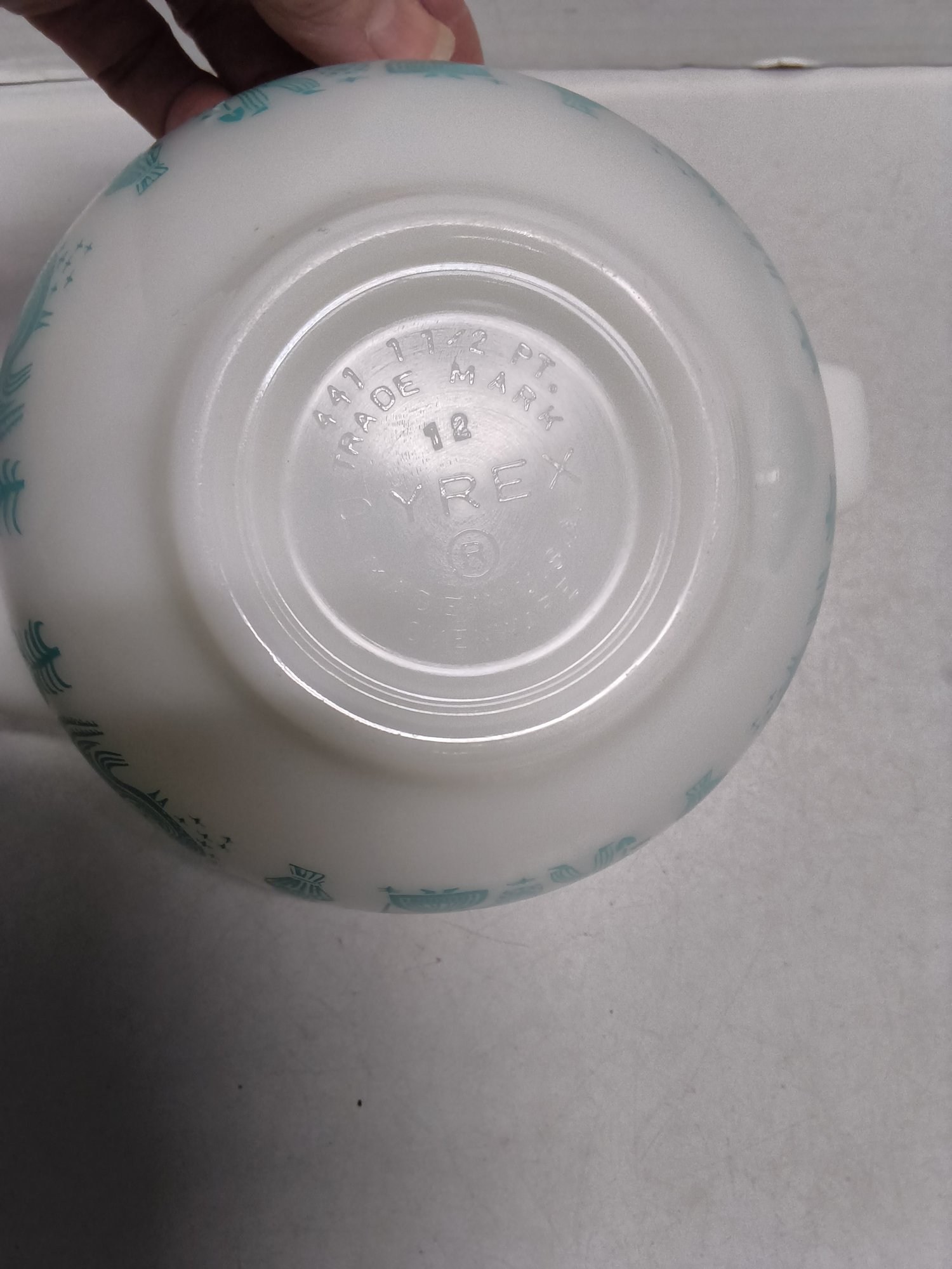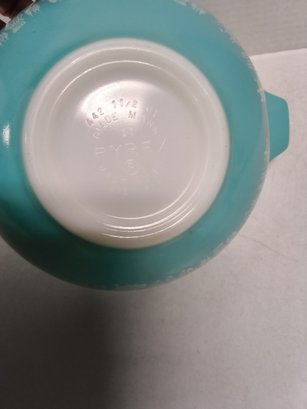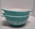 Two 1-1/2 quart bowls with turquoise background, 9-1/4 x 7-1/2 x 3-1/2" high.
