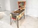 Vintage 1974 Sky Jump Pinball machine, it turns on but doesn't work. Top glass and back board is missing.