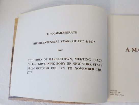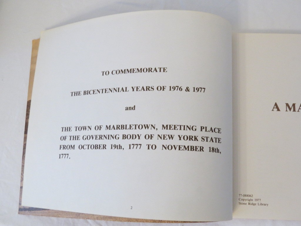 A vintage town of Marbletown bicentennial celebration booklet from 1976/77, commemorating 200 years including serving briefly as the meeting place for the NYS Capitol during the early days of the Revolutionary War. Contains a copy of the JH. French 1858 Map of Ulster County, NY for the town, full of black & white photos and history.