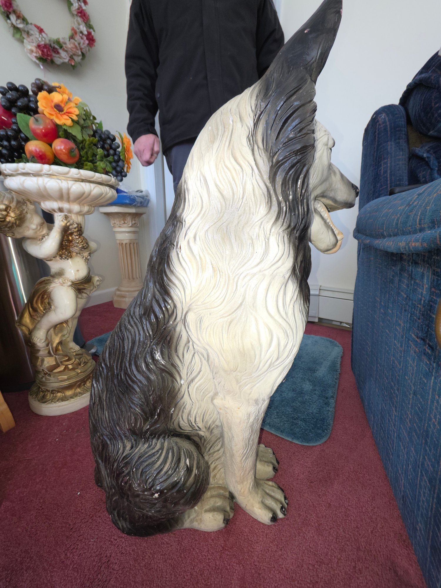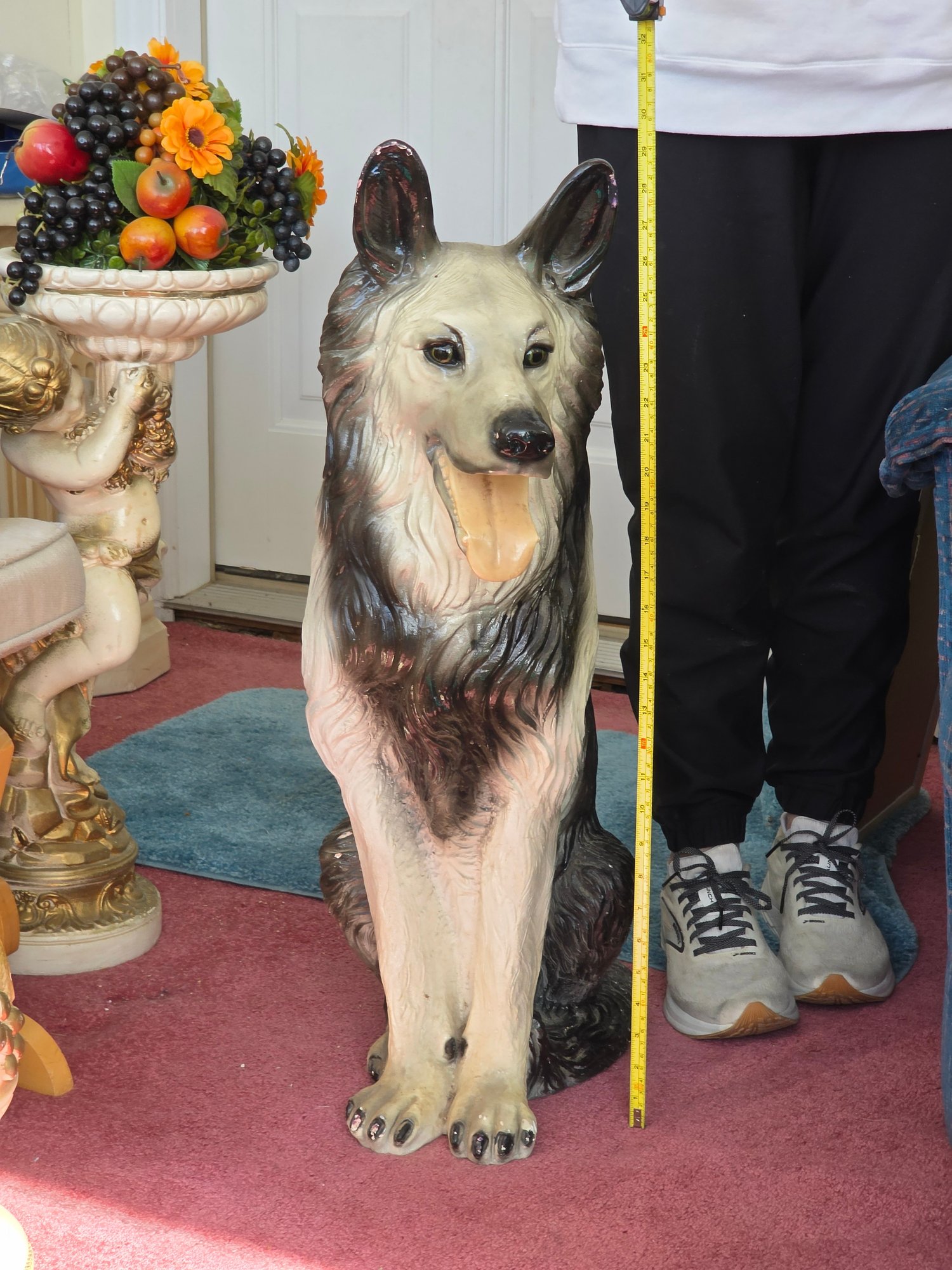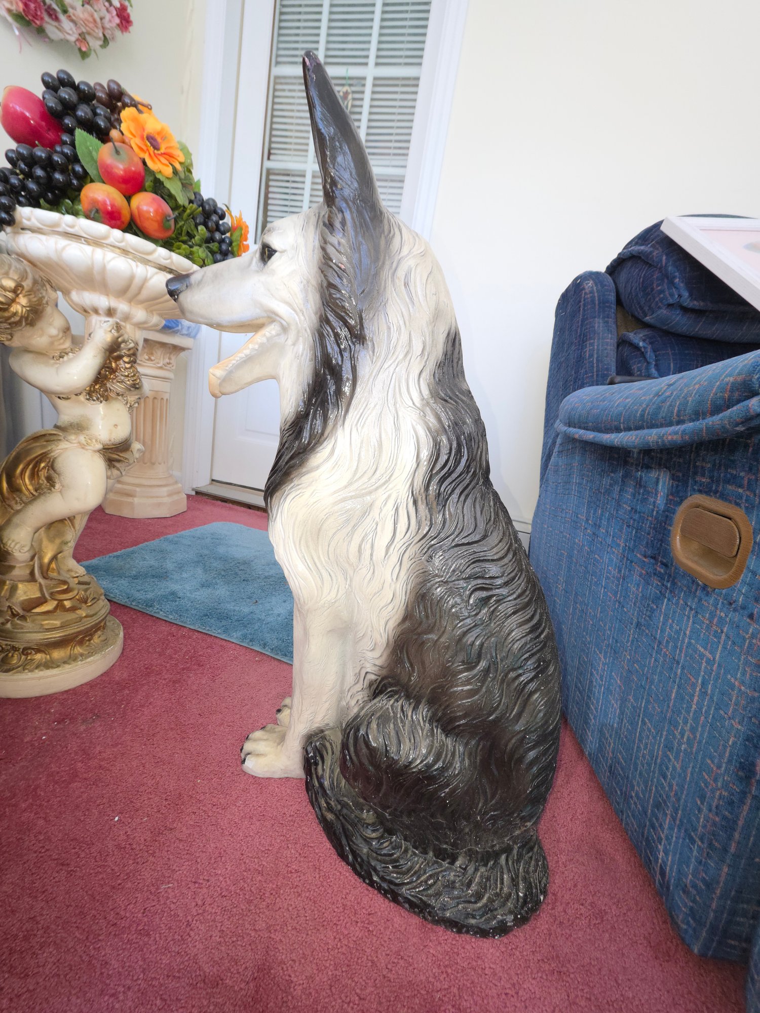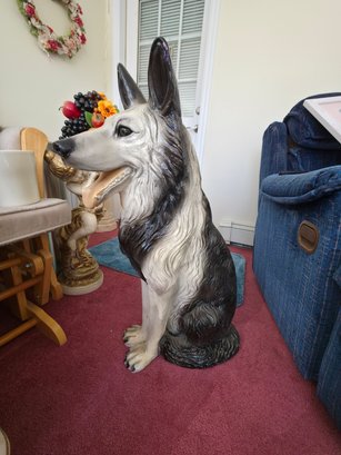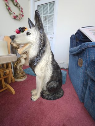 Vintage 30" Tall Chalkware German Sheppard Statue. Circa 1950's. Heavy.