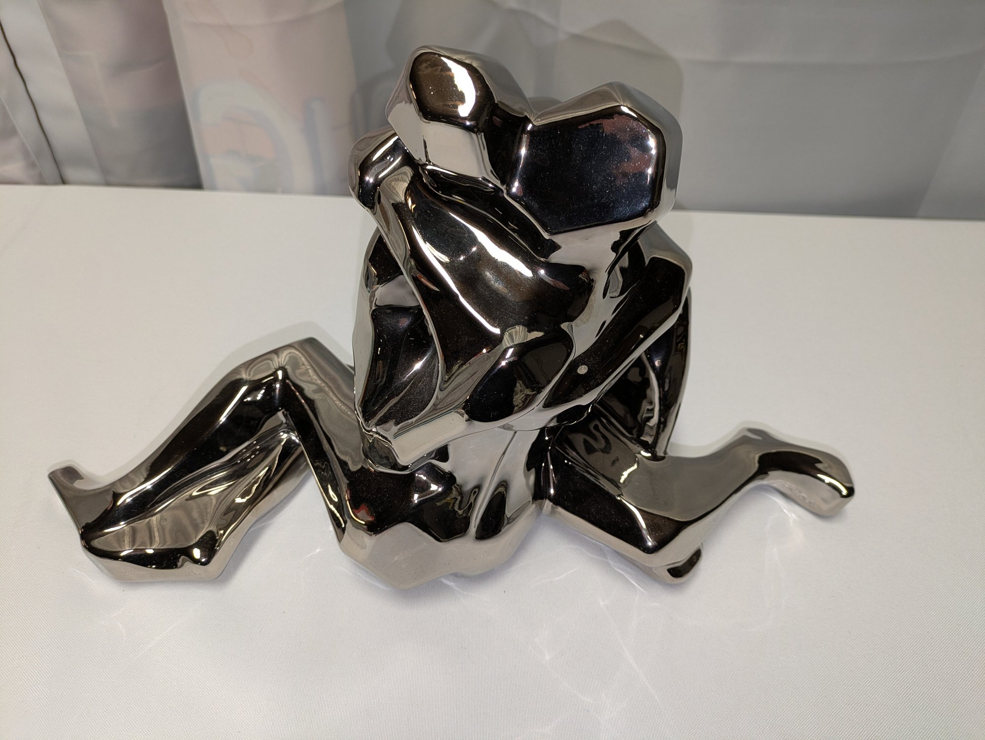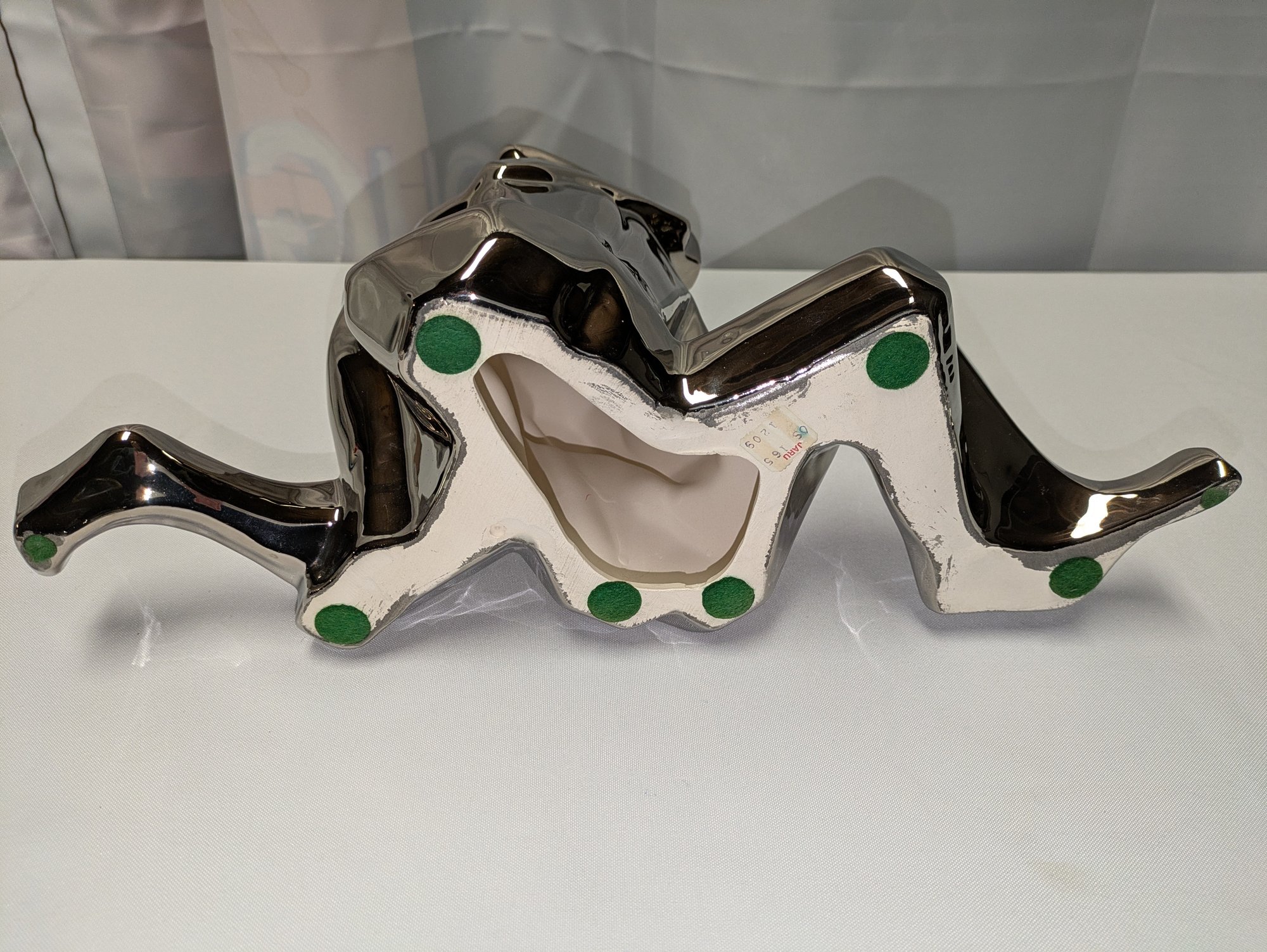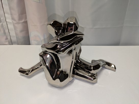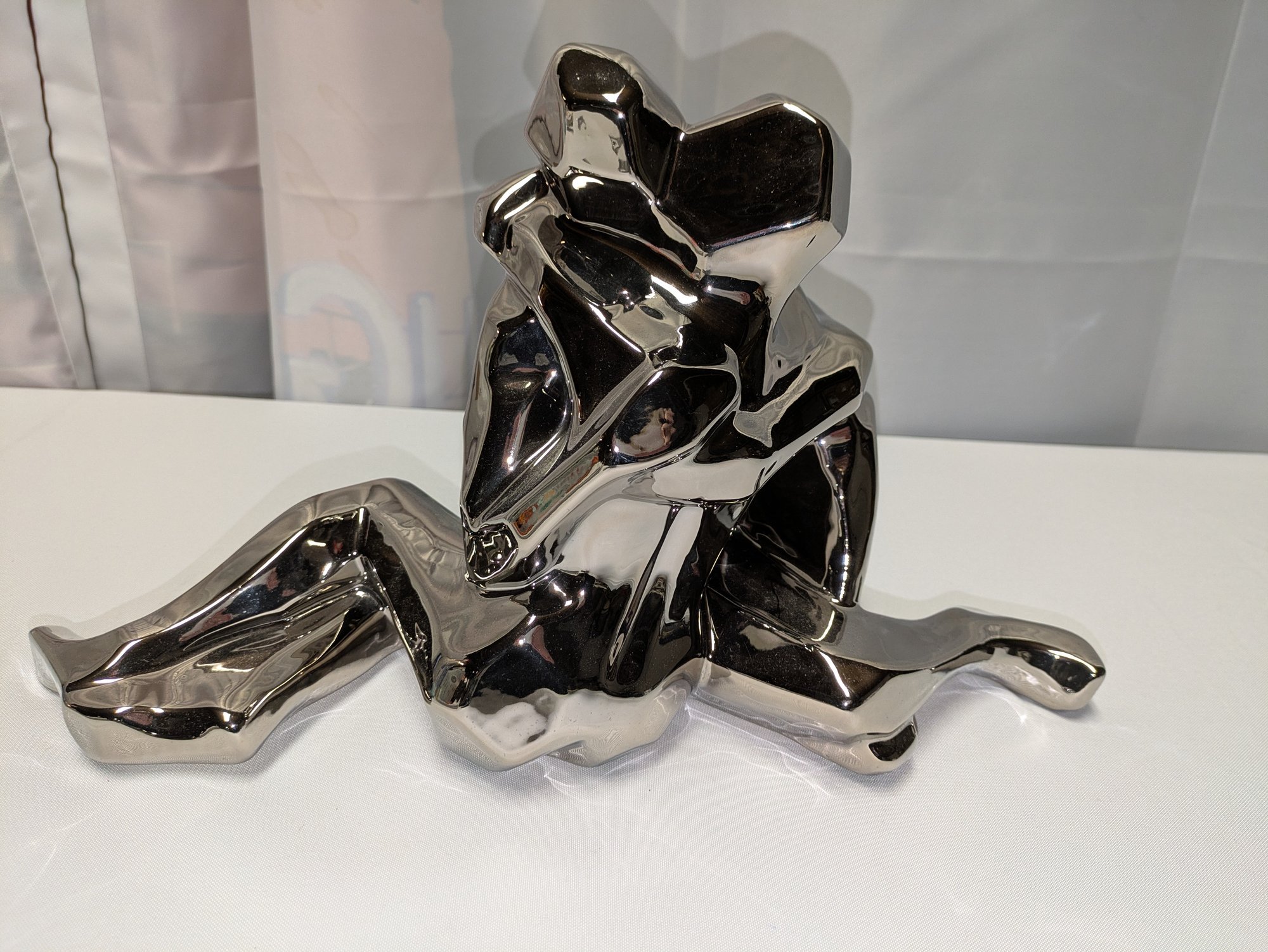 Vintage 70s Jaru Platinum Plated Over Ceramic Cubist Lovers Embrace Sculpture. Art Deco inspiration meets cubism meets modern of this figural sculpture. The intertwined male/female bodies pose in form, and every angle changes depending on how you look at it and place it. 9.5" x 7" x 16". Excellent Vintage Condition. Please see all photos as part of the description and condition.