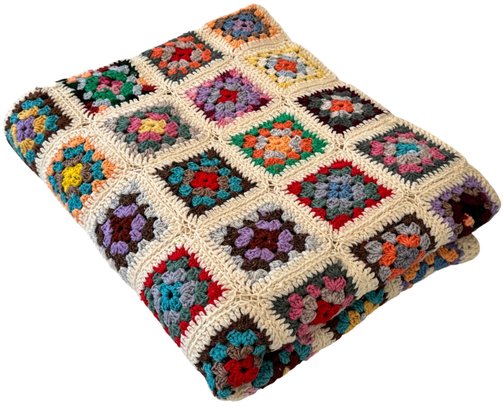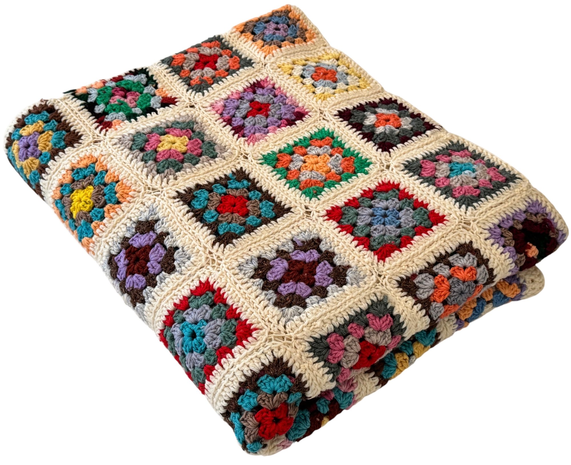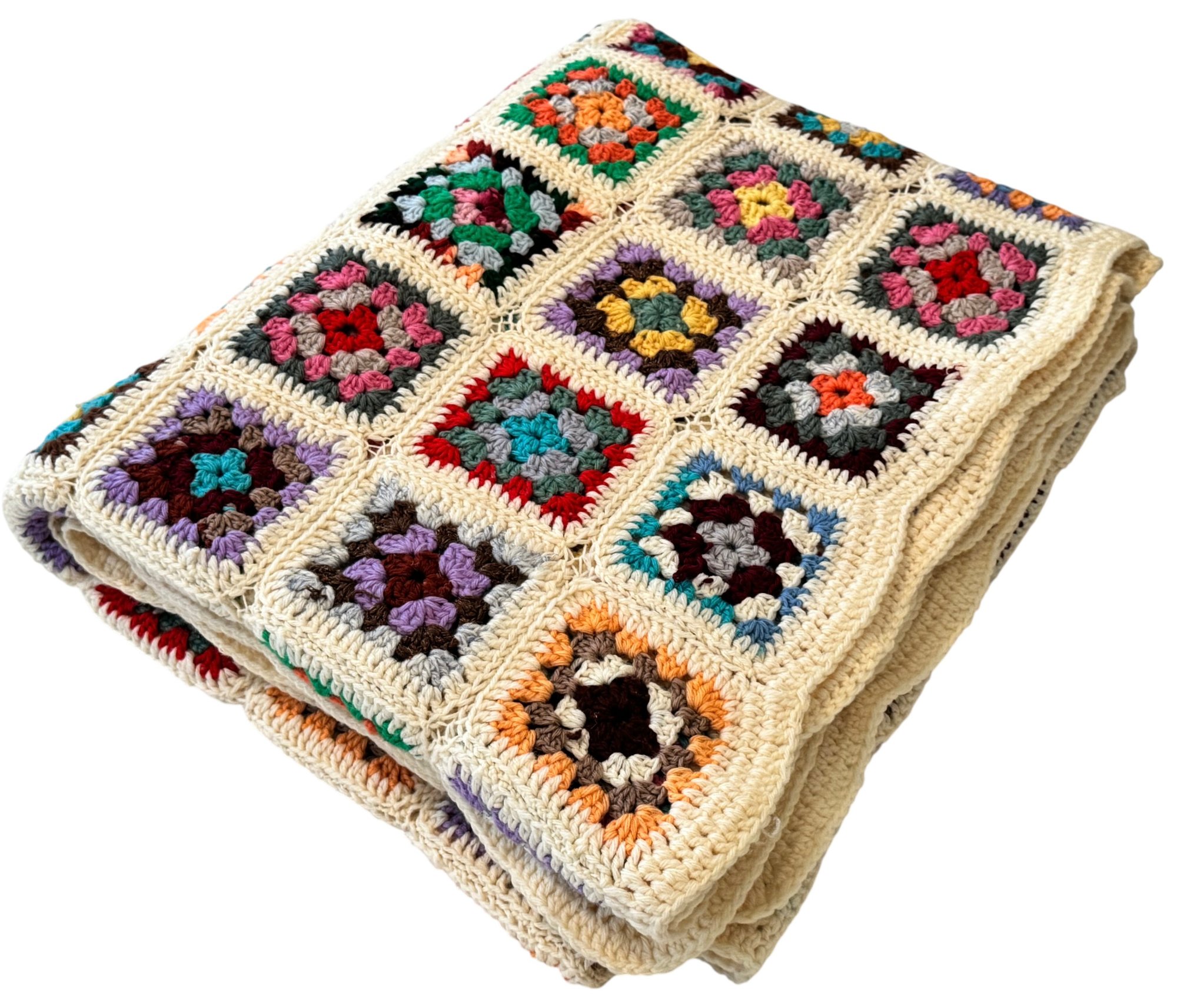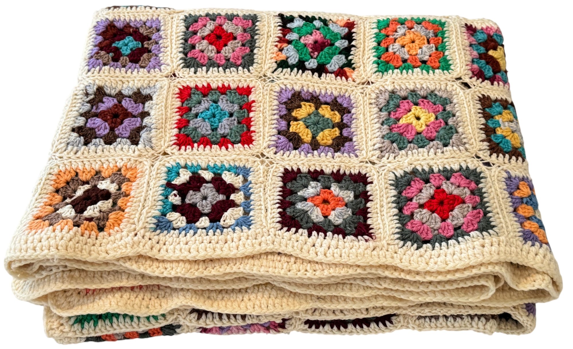 Note: overall good vintage condition, one square has a bit of loose yarn, please see photos.