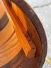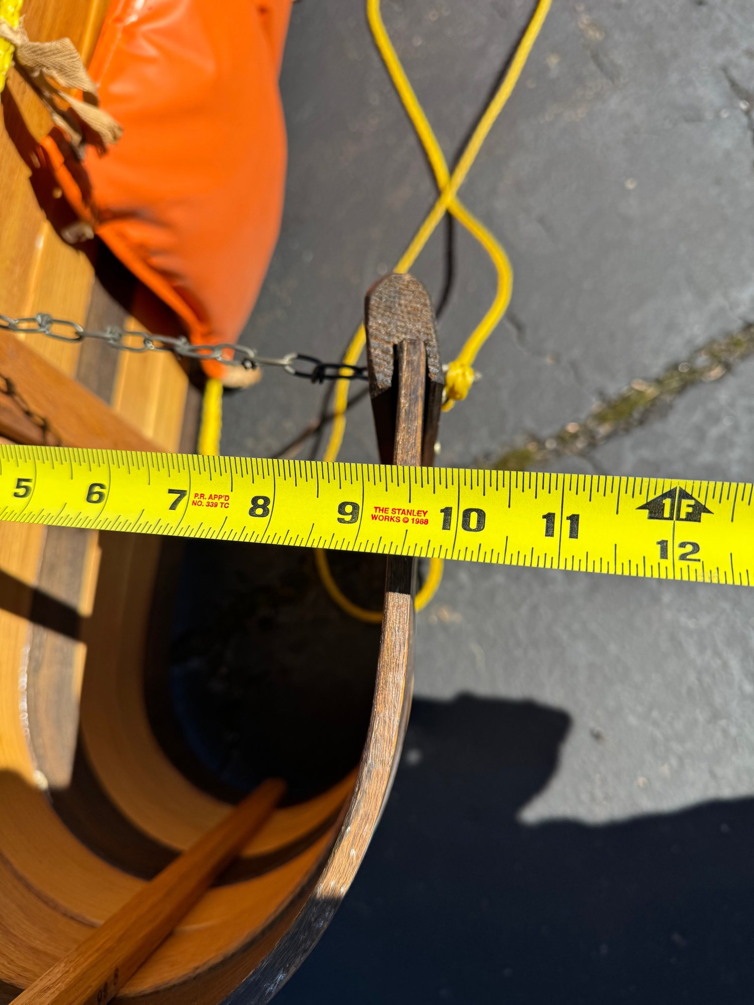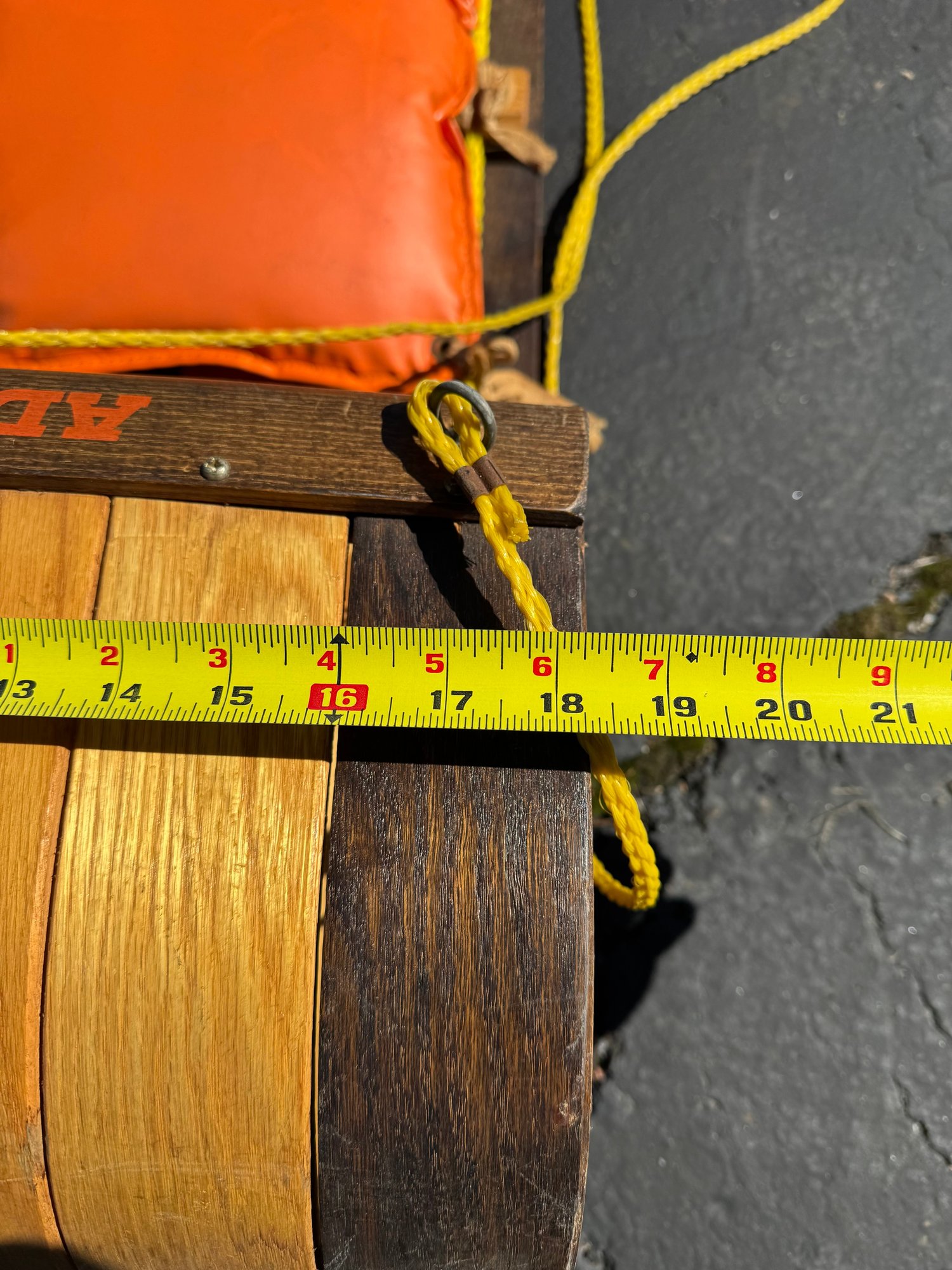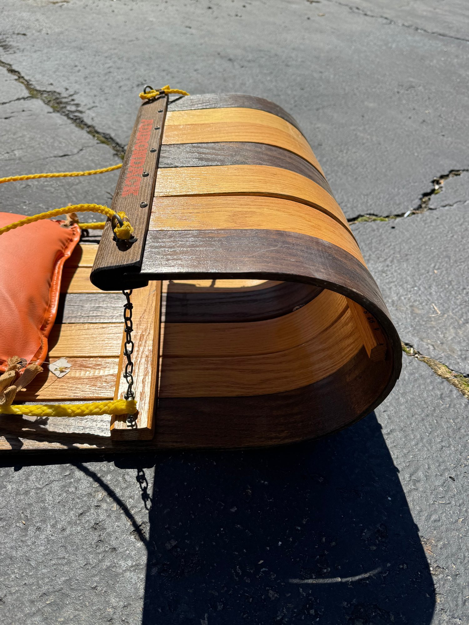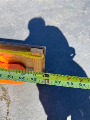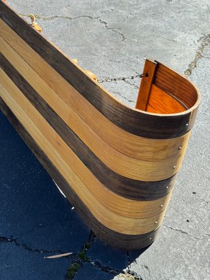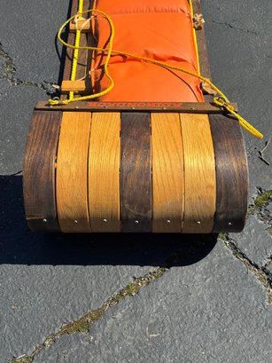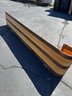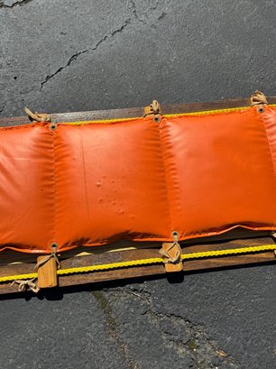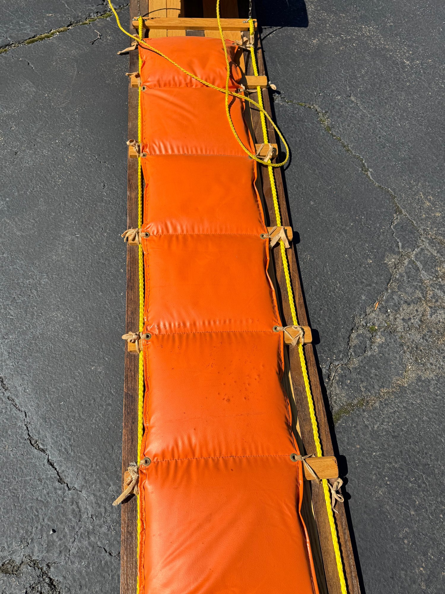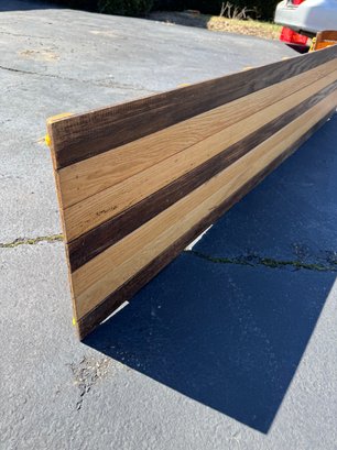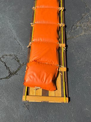 A beautiful piece believed to be made of oak featuring a vinyl seat. It appears to have hardly been used/if used at all and has a few faint marks on the seat. It measures approximately 8 feet long, 18.5” wide and 10” tall.