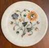 Attractive alabaster decorative plate with stone and mother of pearl inlay. The plate is in very good condition.