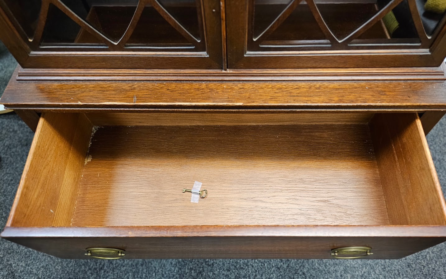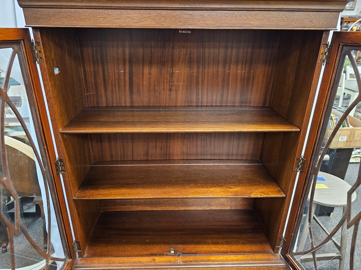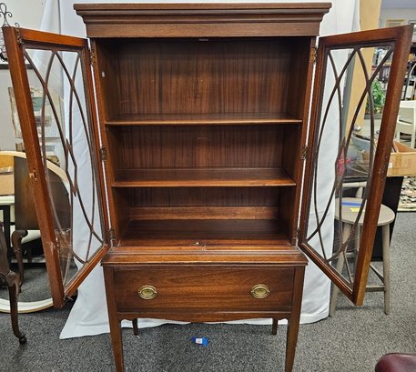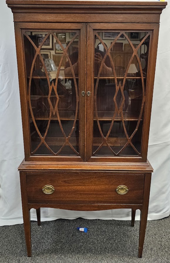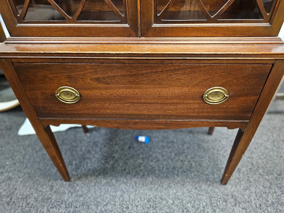 Vintage antique mahogany display case cabinet - beautiful piece, but has some wear and tear - **Please View the Pictures for Item Condition** and Thank You for your Support. Every Dollar helps individuals and families through our Foundation & Mission.