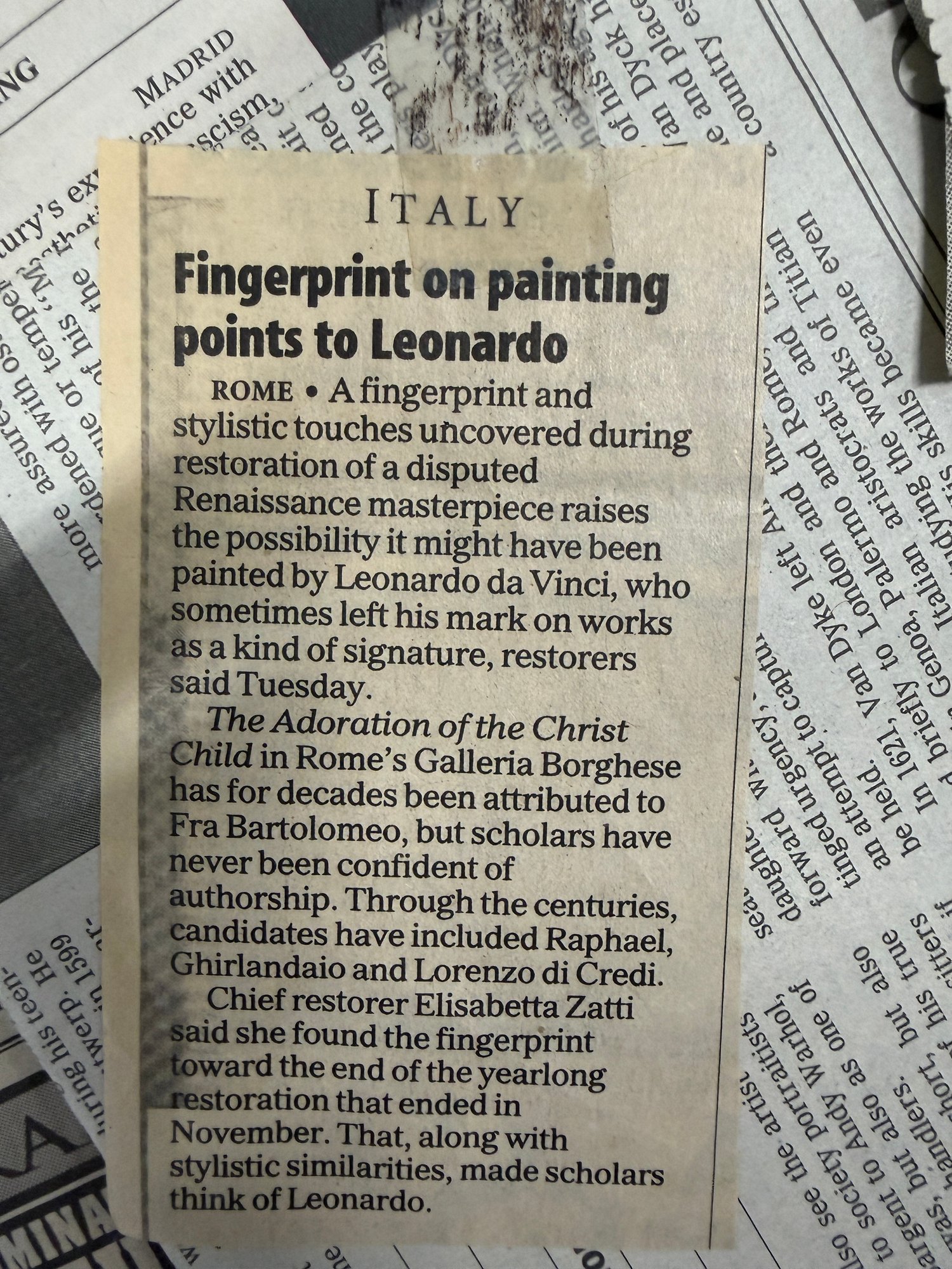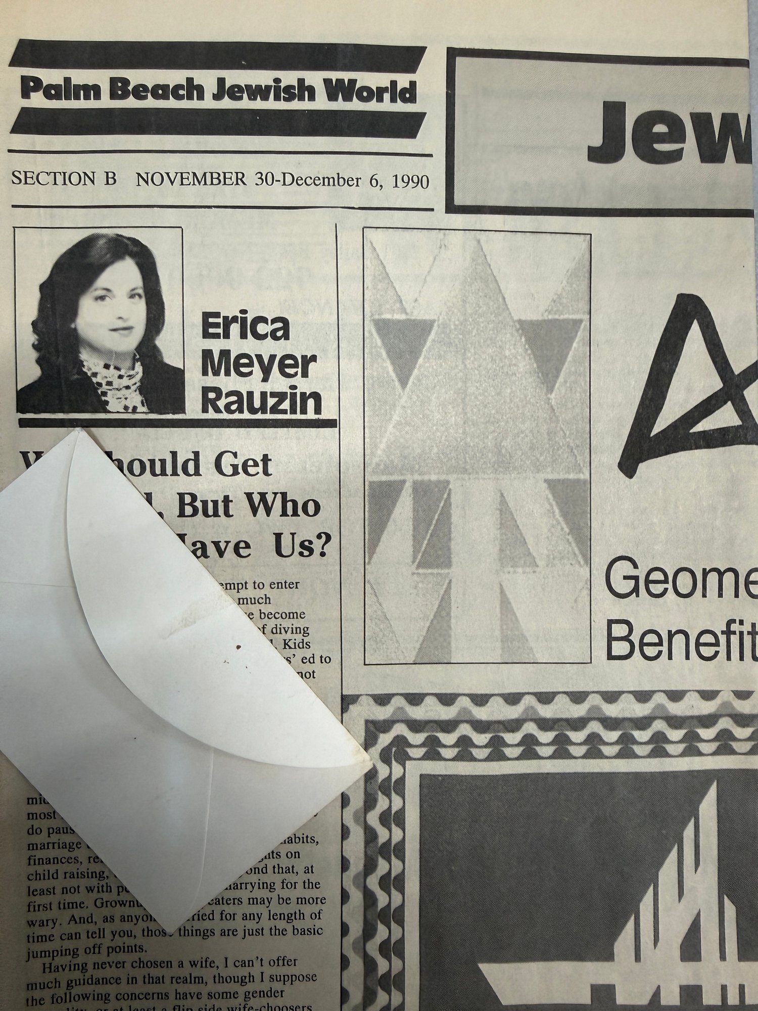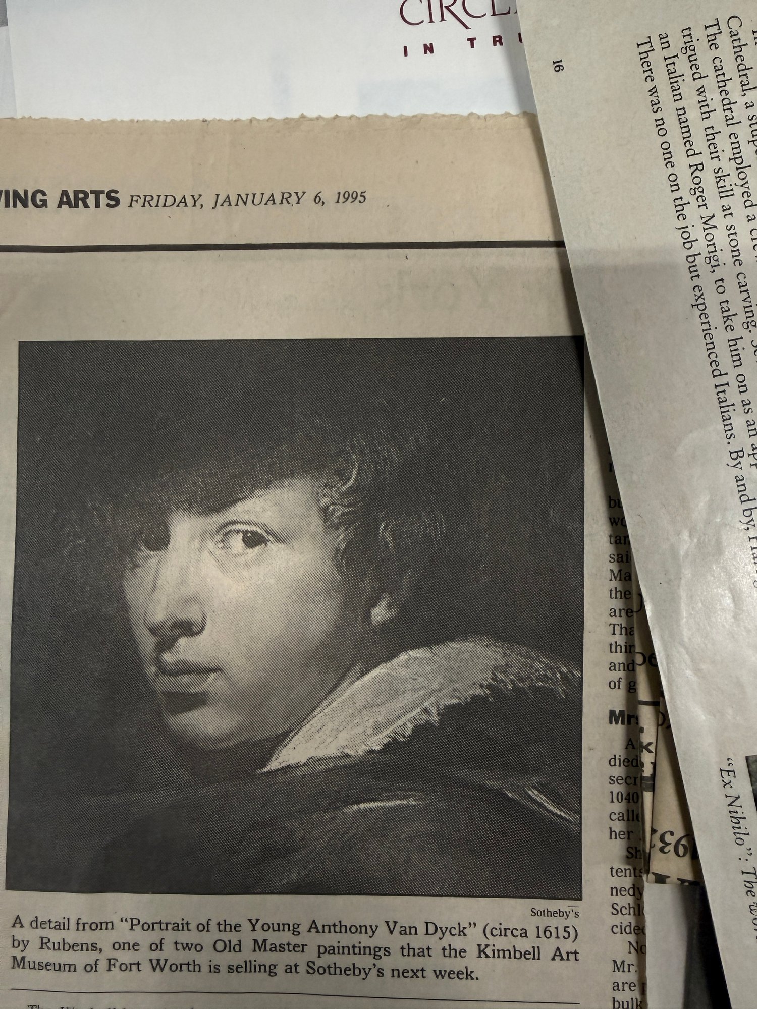 Vintage art-related ephemera including newspaper clippings, gallery materials, and correspondence dating from the late 1980s through 1990s. Includes references to Old Master works, exhibition articles, and material related to artist Yaacov Agam along with a handwritten gallery letter dated 1989. Condition varies with age-related wear, toning, and folds. Sold as found.