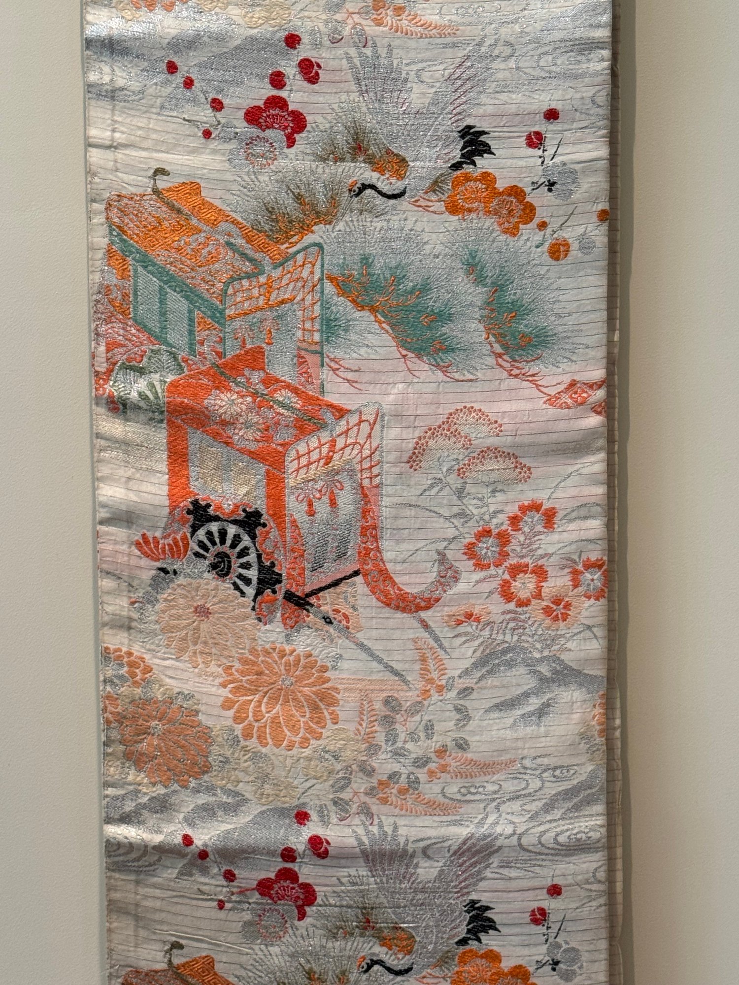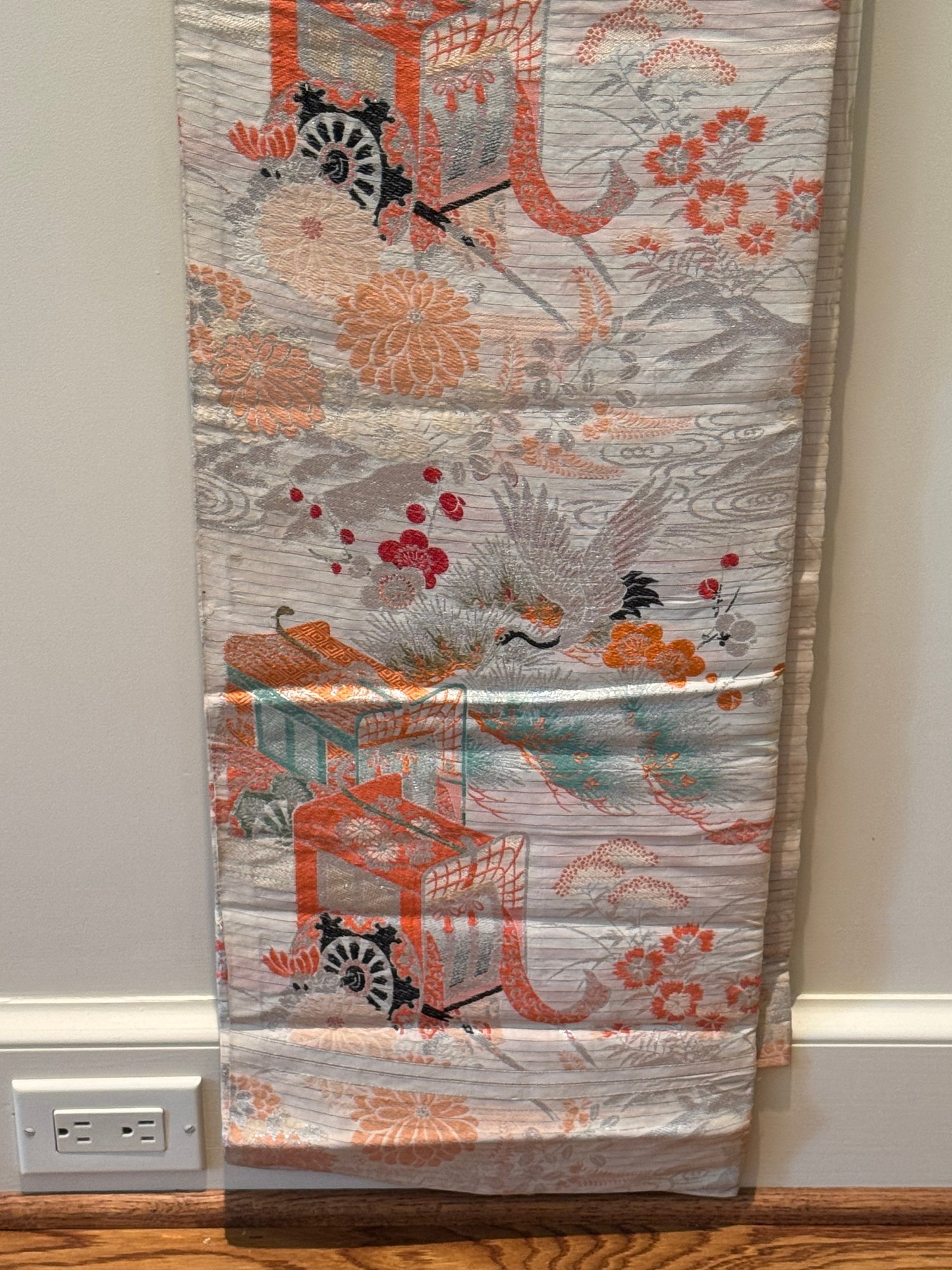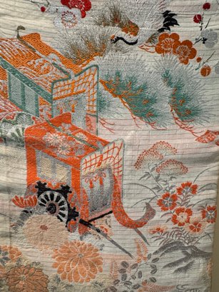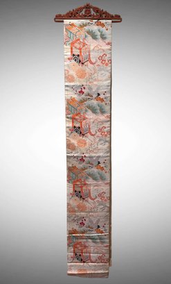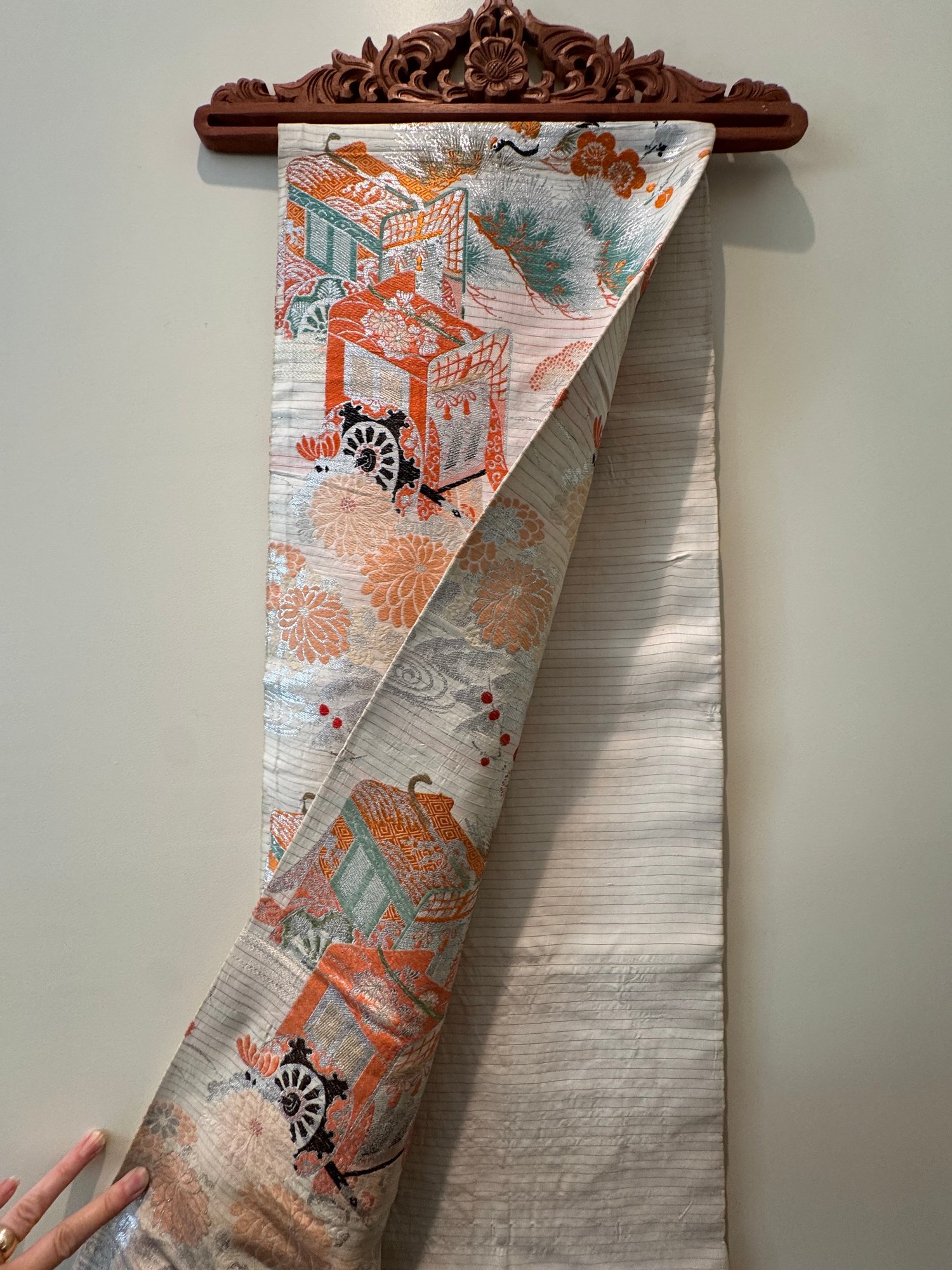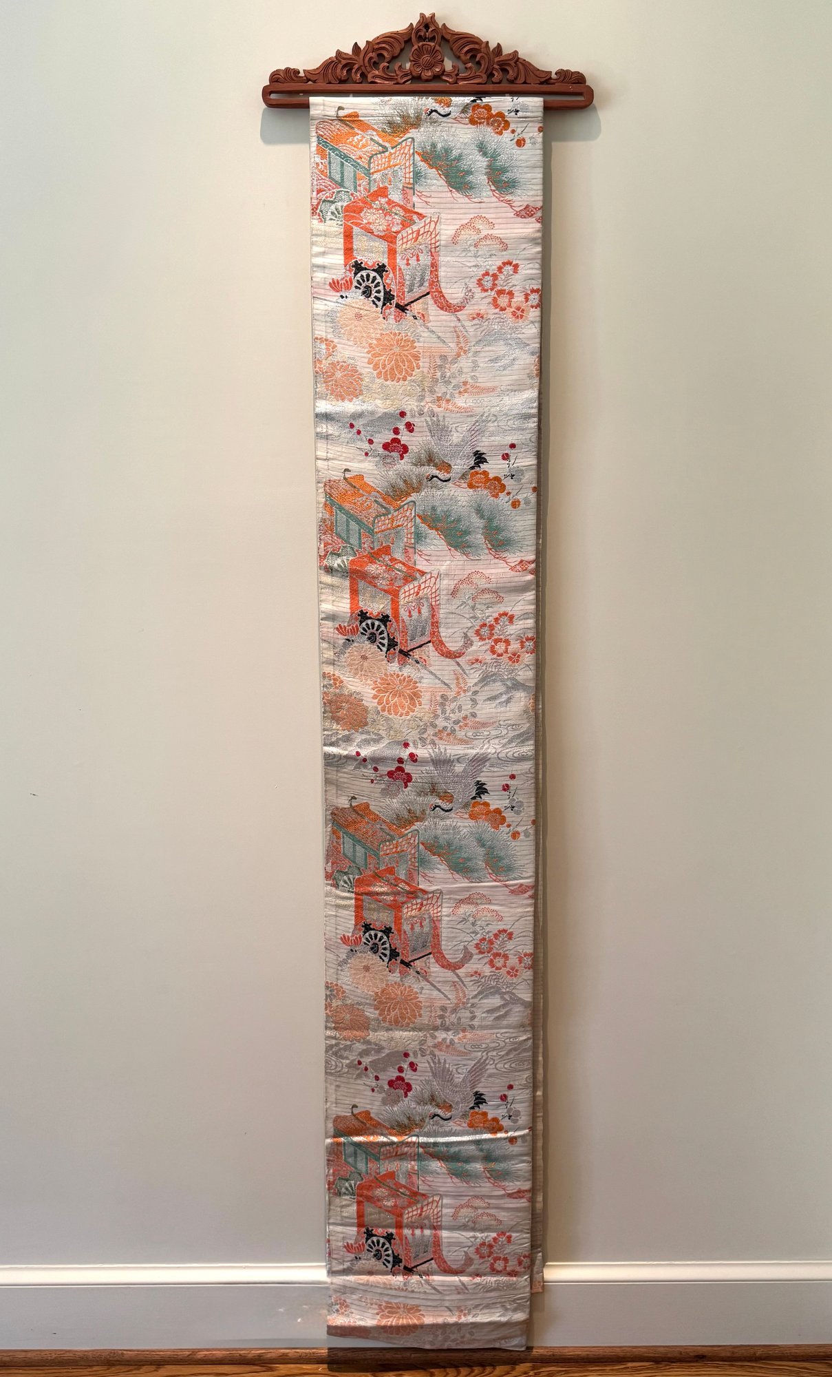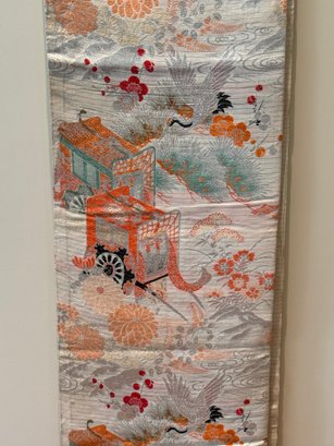 Vintage Asian Silk Obi Textile As Wall Hanging In Orange Tone