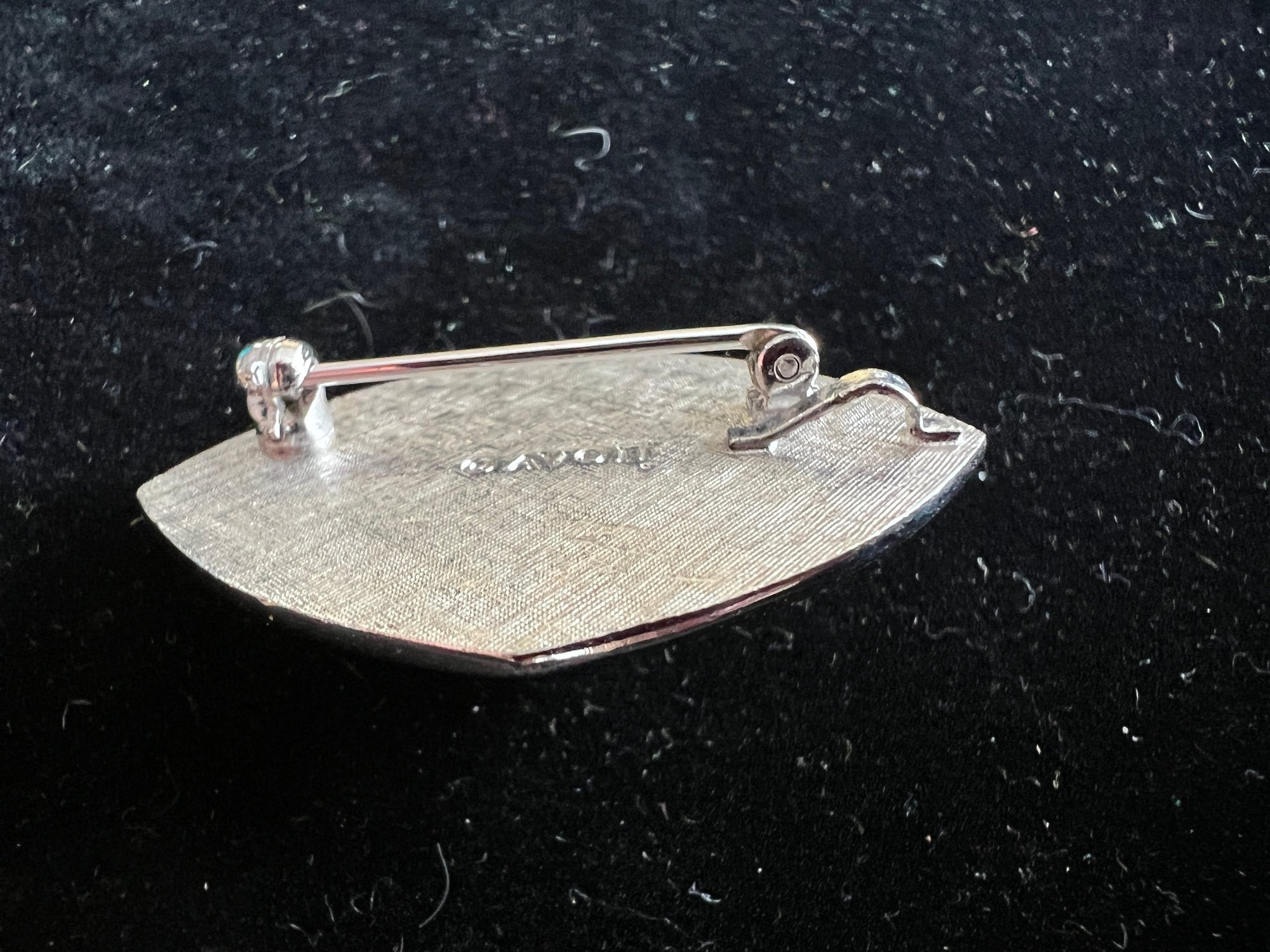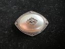 Vintage silver tone faux pearl and rhinestone art deco styled brooch.