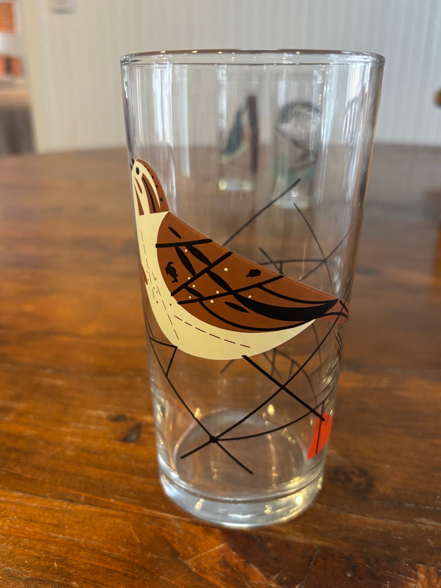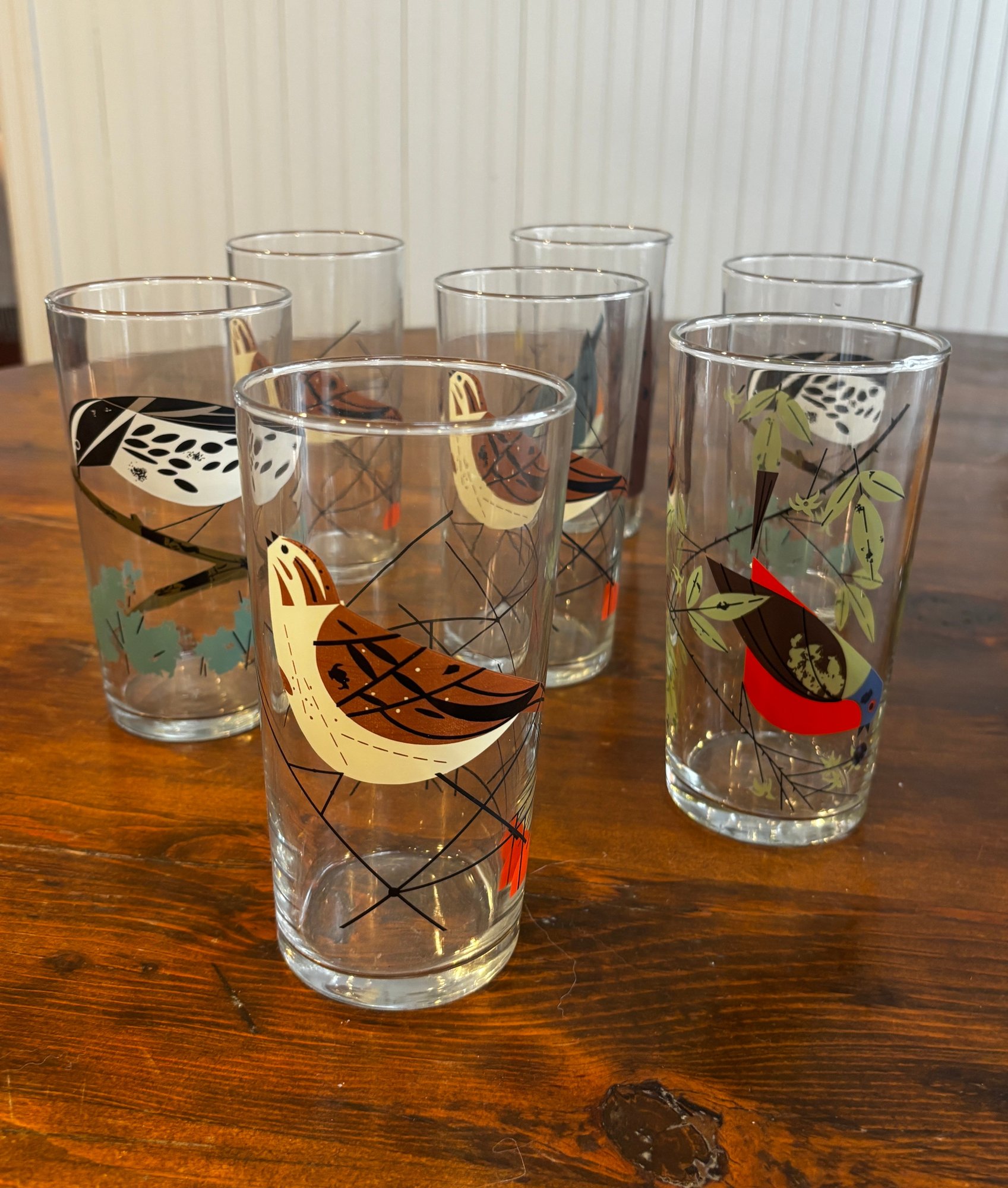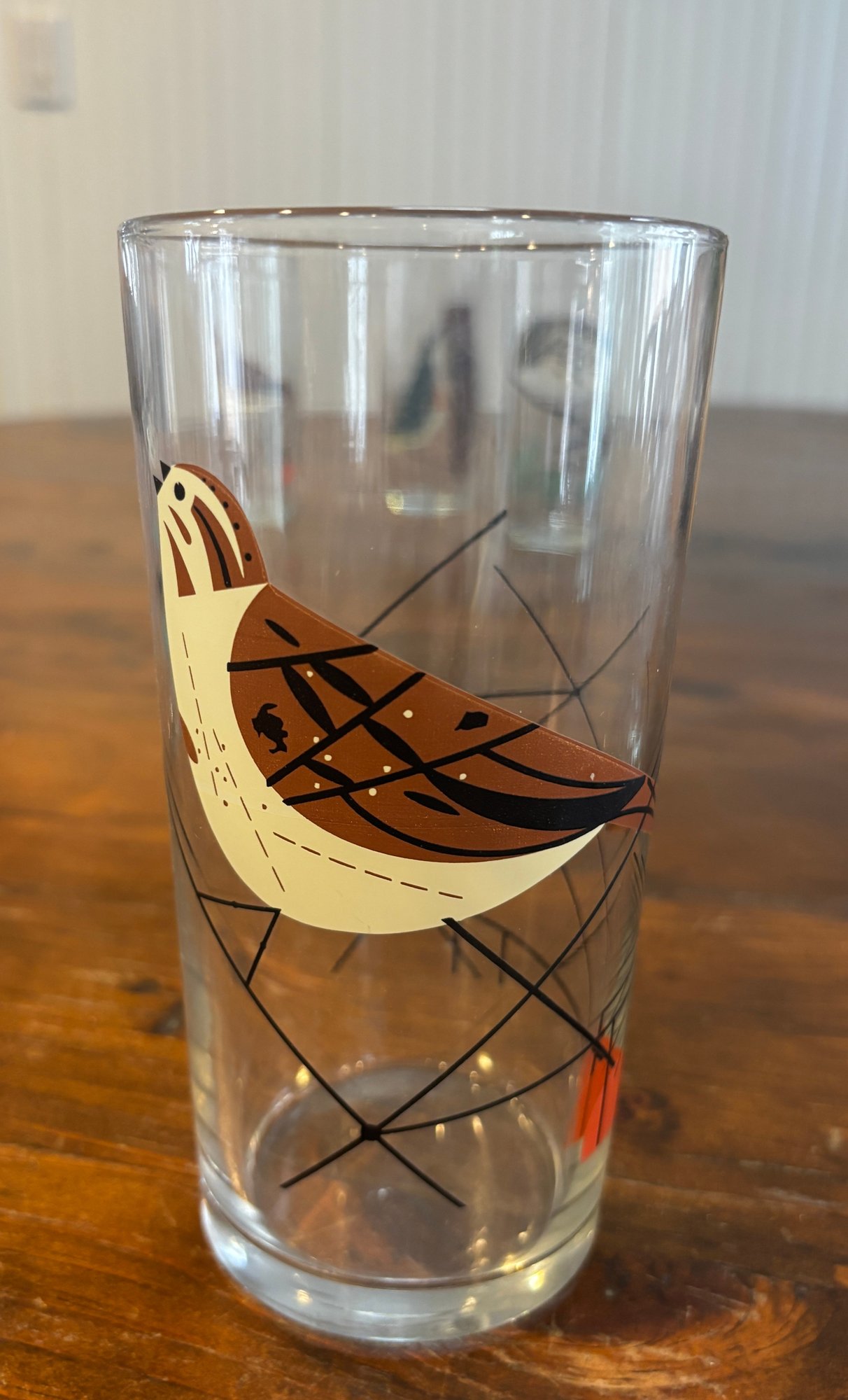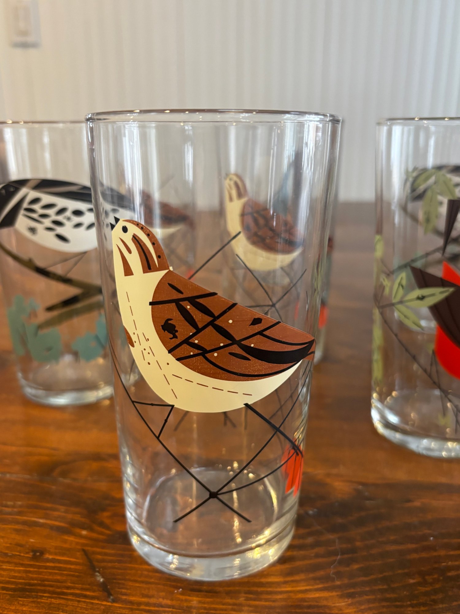 Vintage B&W Warbler Bird glasses, 20 oz - Setr of 7