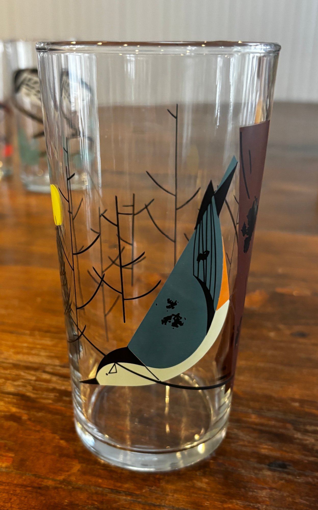 B&W Warbler drinking glasses, Part of the Charley Harper + Todd Oldham Collection.