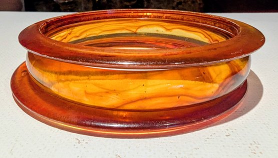 The style of the bangles—especially the thicker, rounded one in the first image (often called a "clamshell" or "doughnut" bangle) was popular in the 1930s and 1940s.