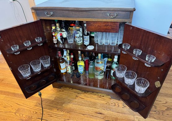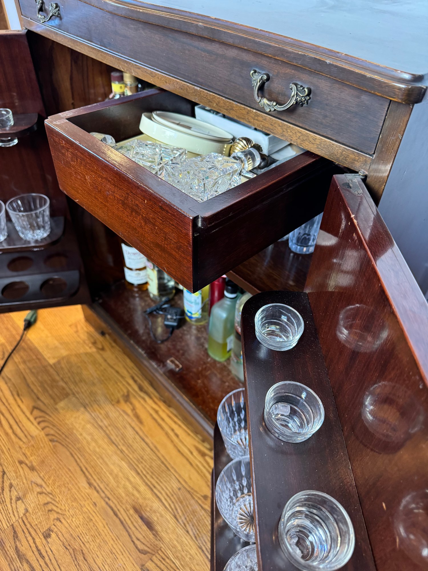 lift top, two doors and interior drawer