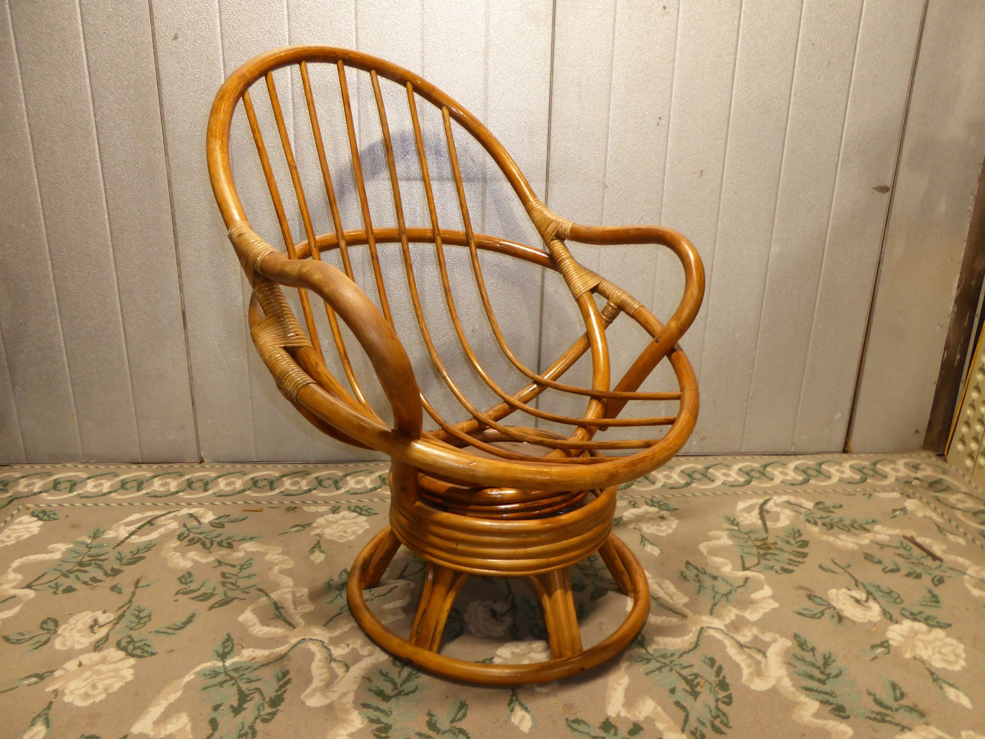 Vintage Bent Rattan Swivel Chair