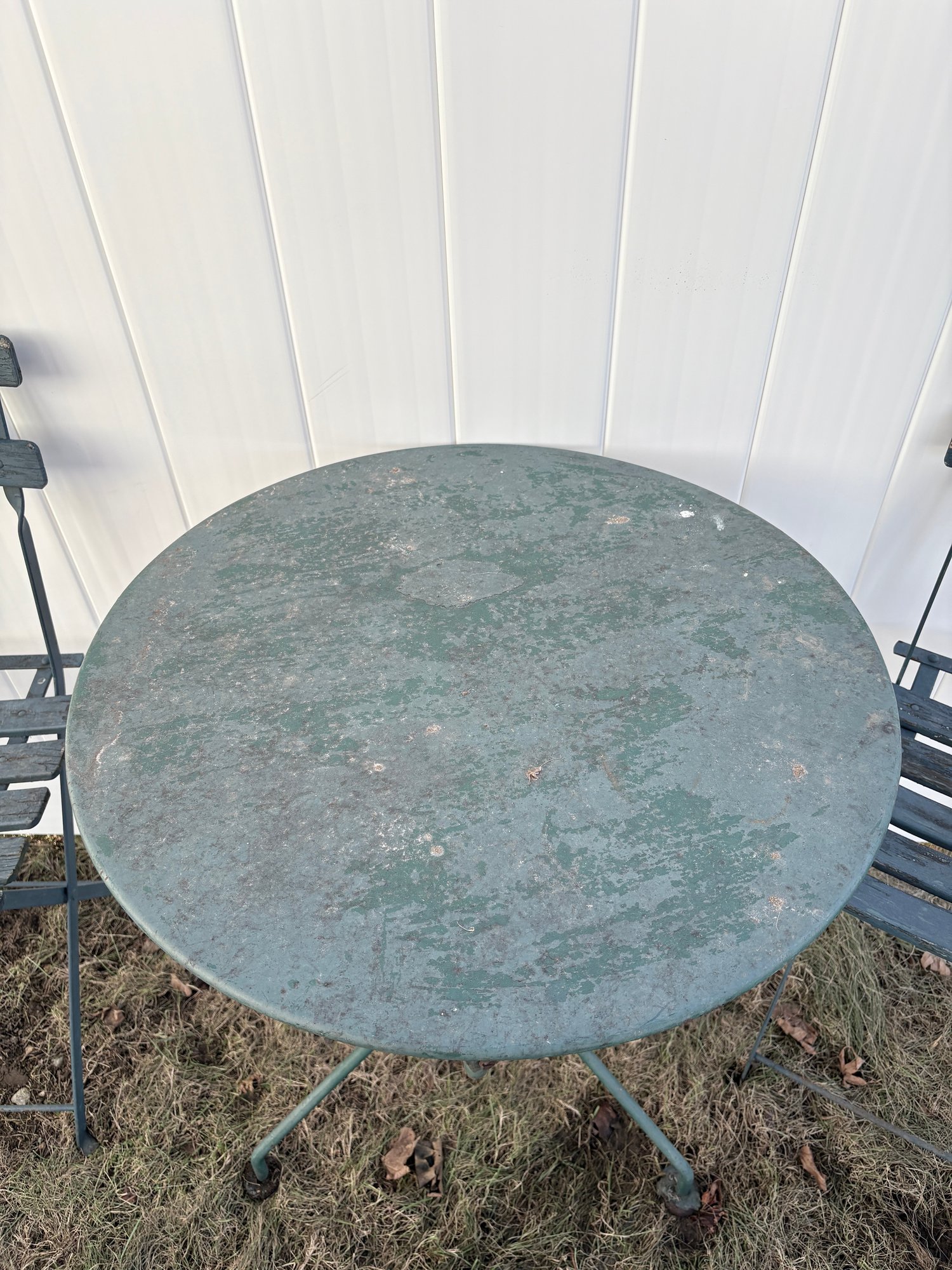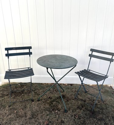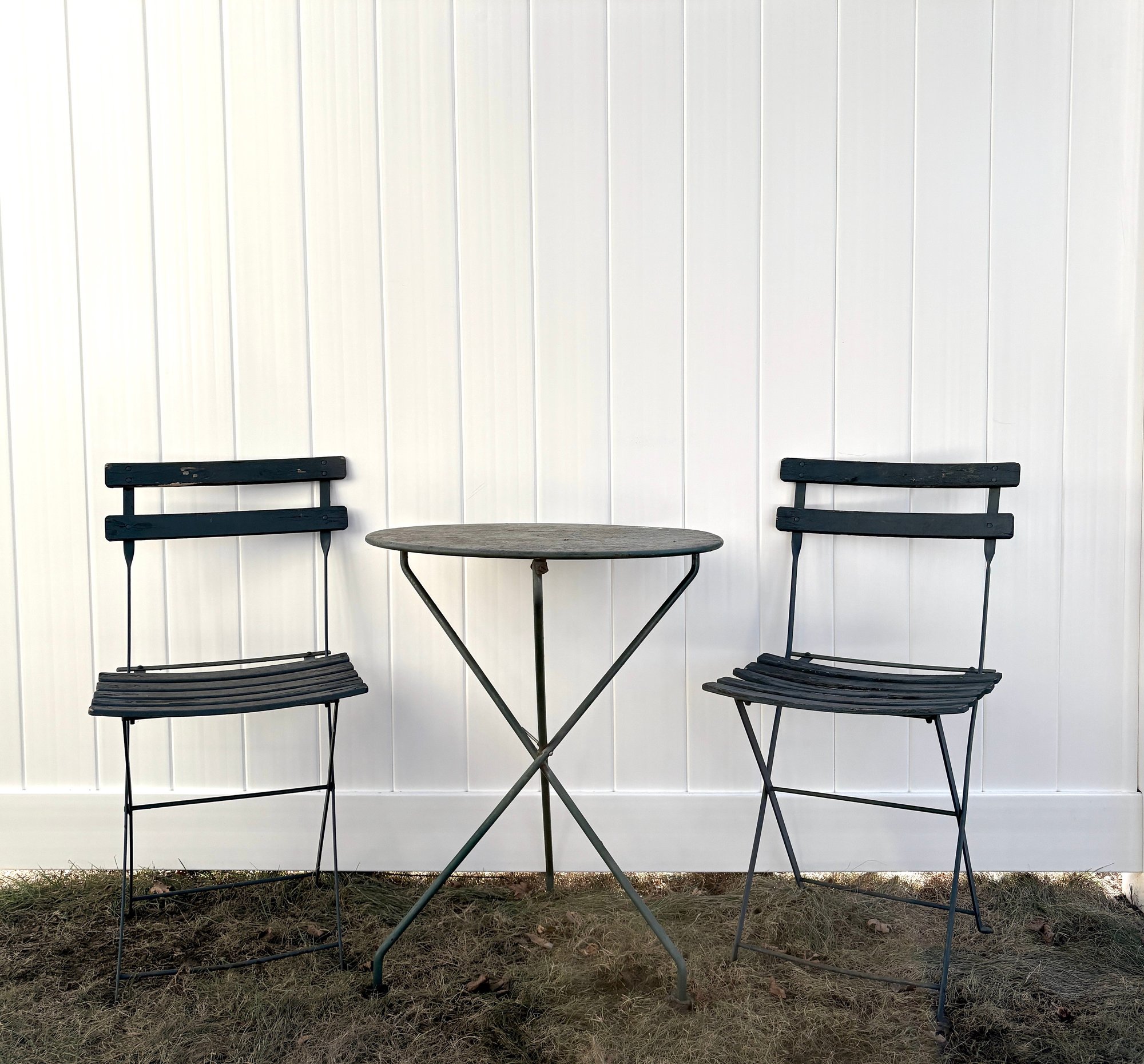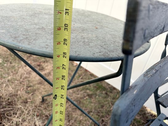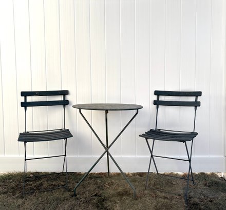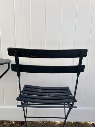 Vintage Bistro Set - Metal Table Antique Wood Slat Chairs