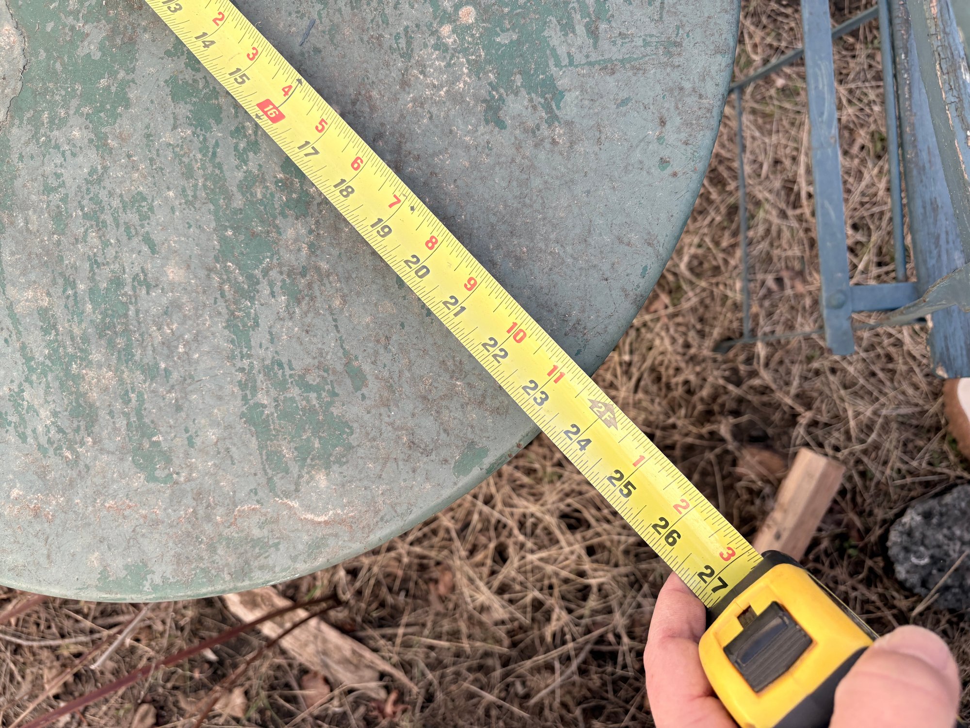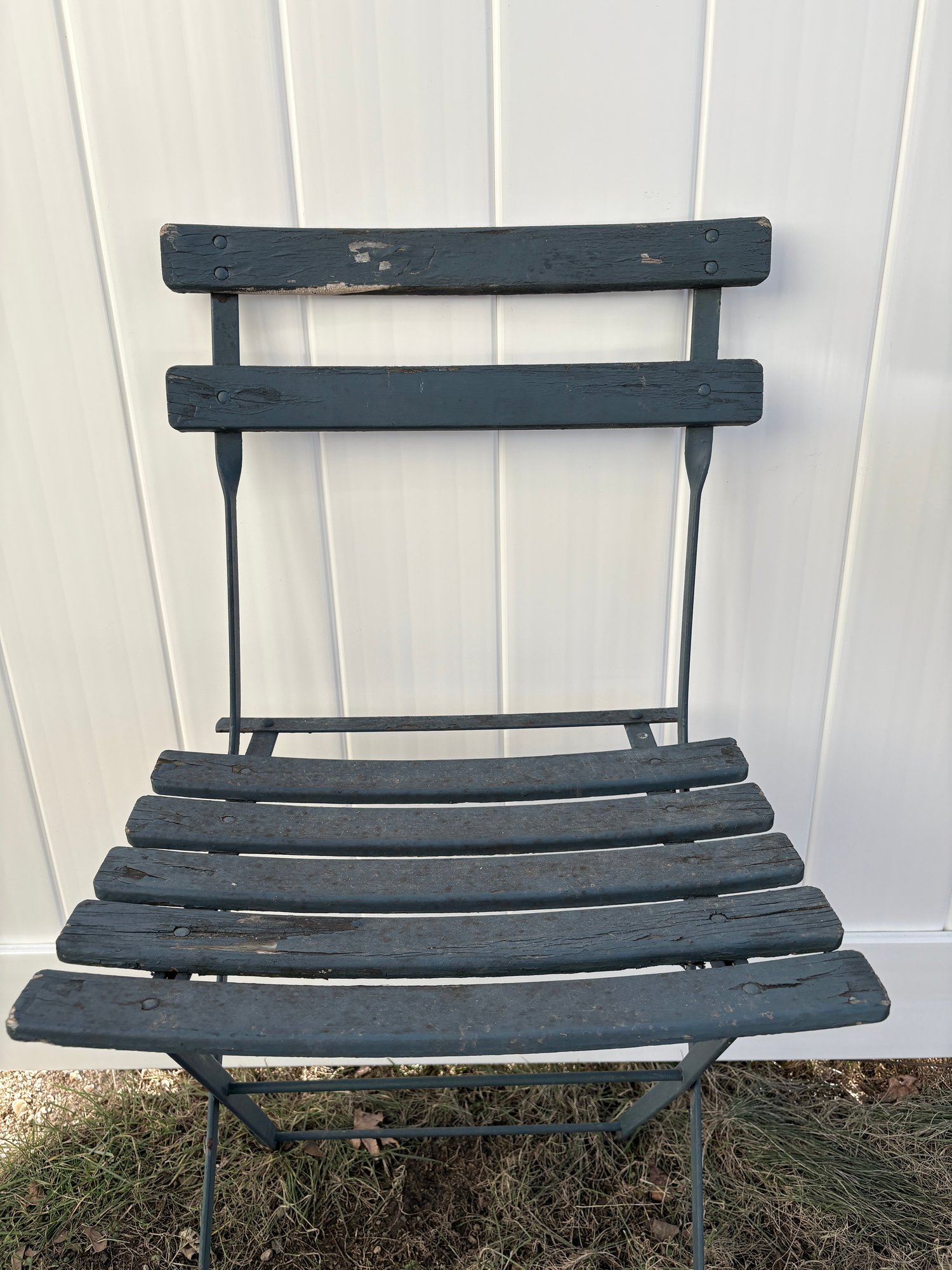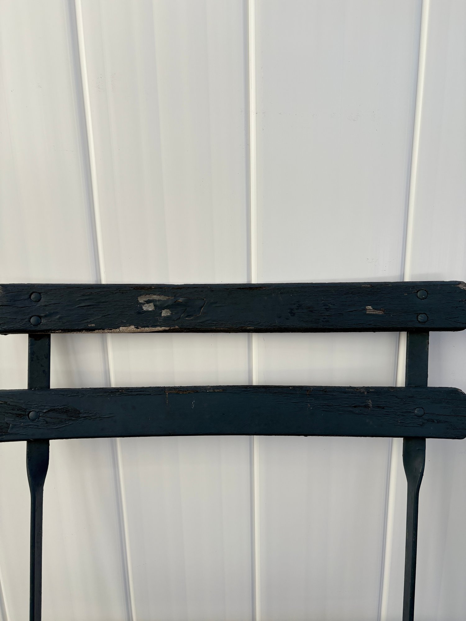 Vintage Bistro Set - Metal Table Antique Wood Slat Chairs