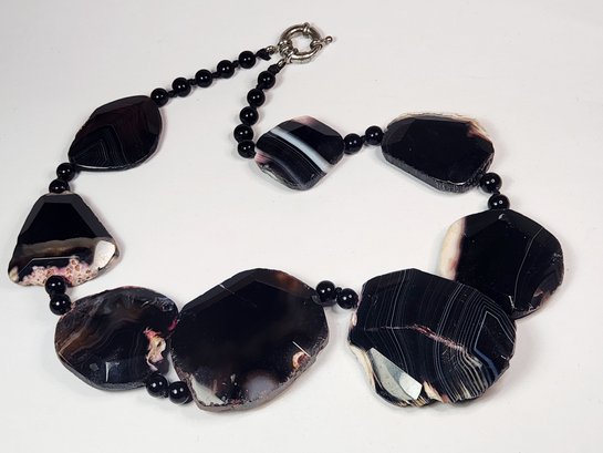 Vintage Black Agate Stone Bold Statement Choker Necklace