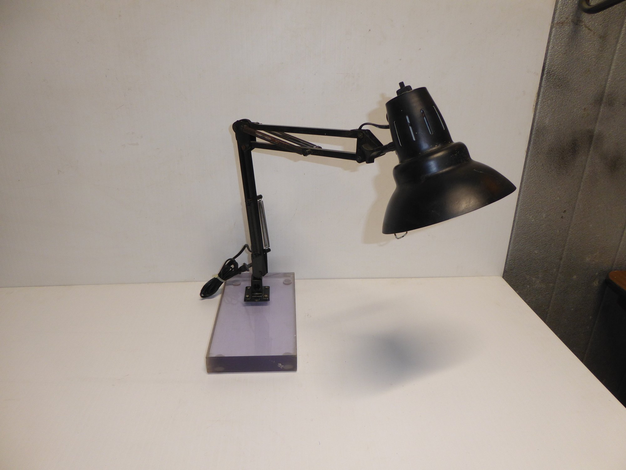 Vintage Black Articulating Metal Lamp With Lucite Base