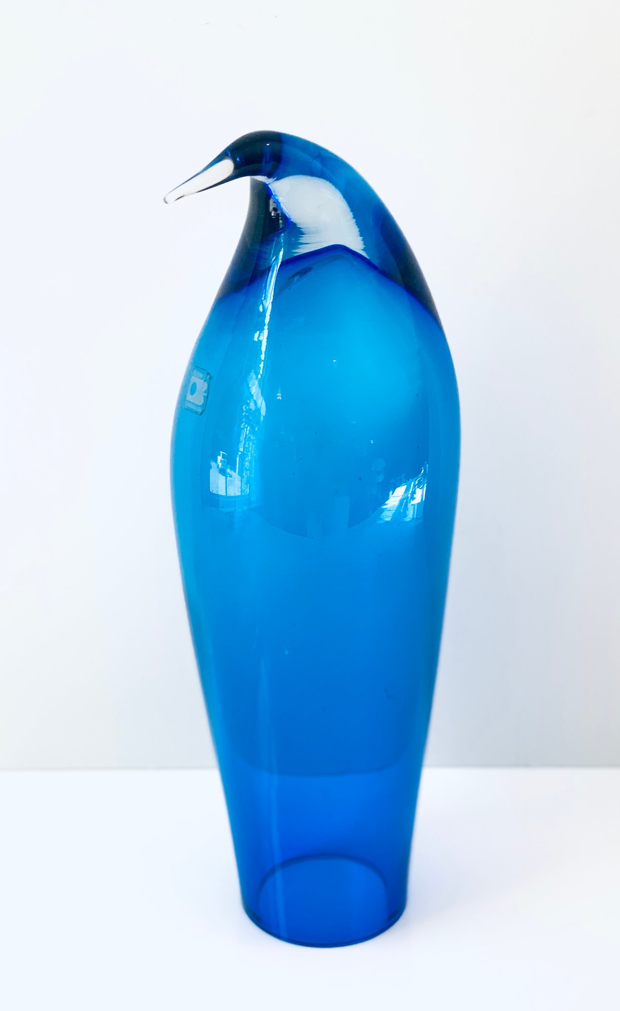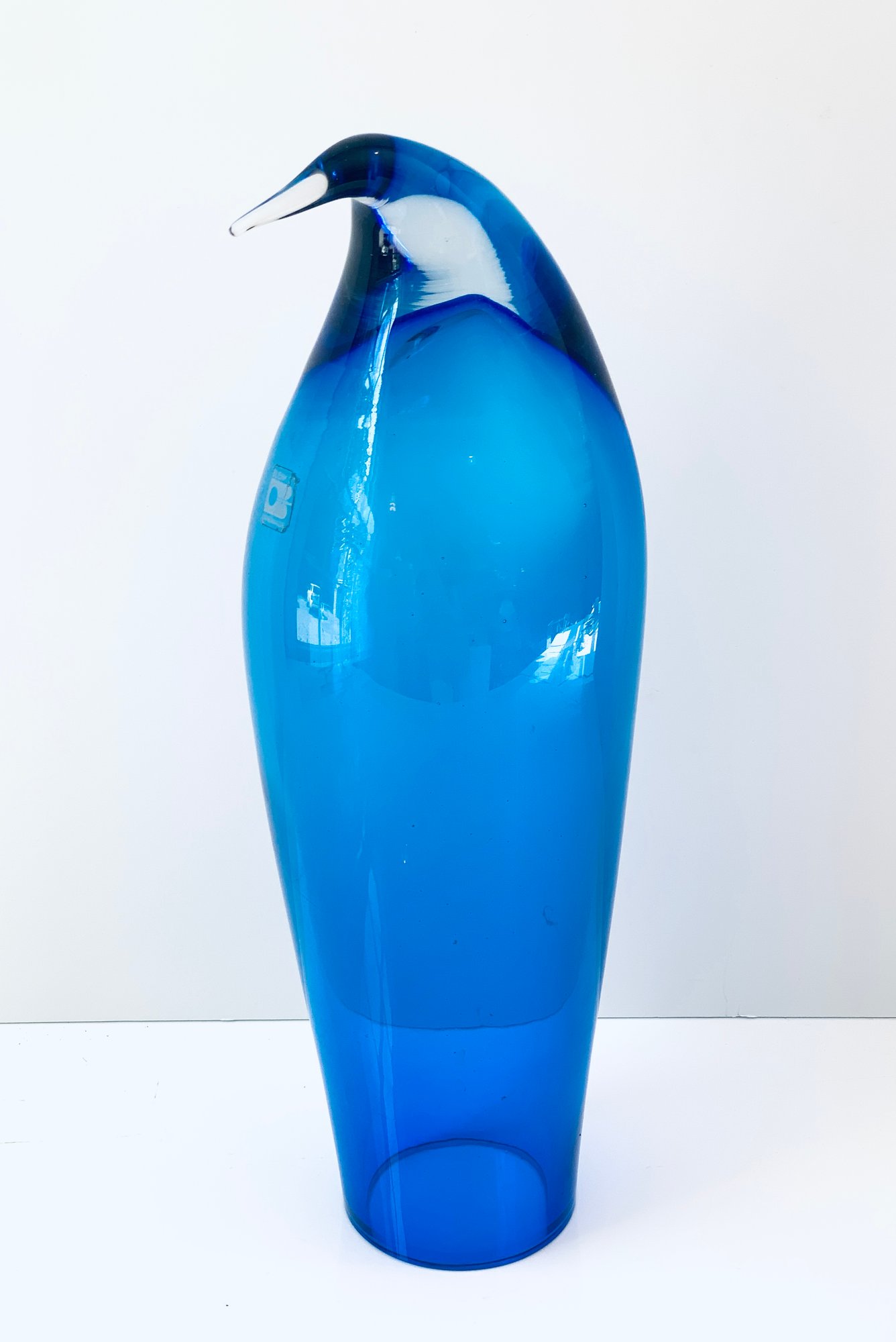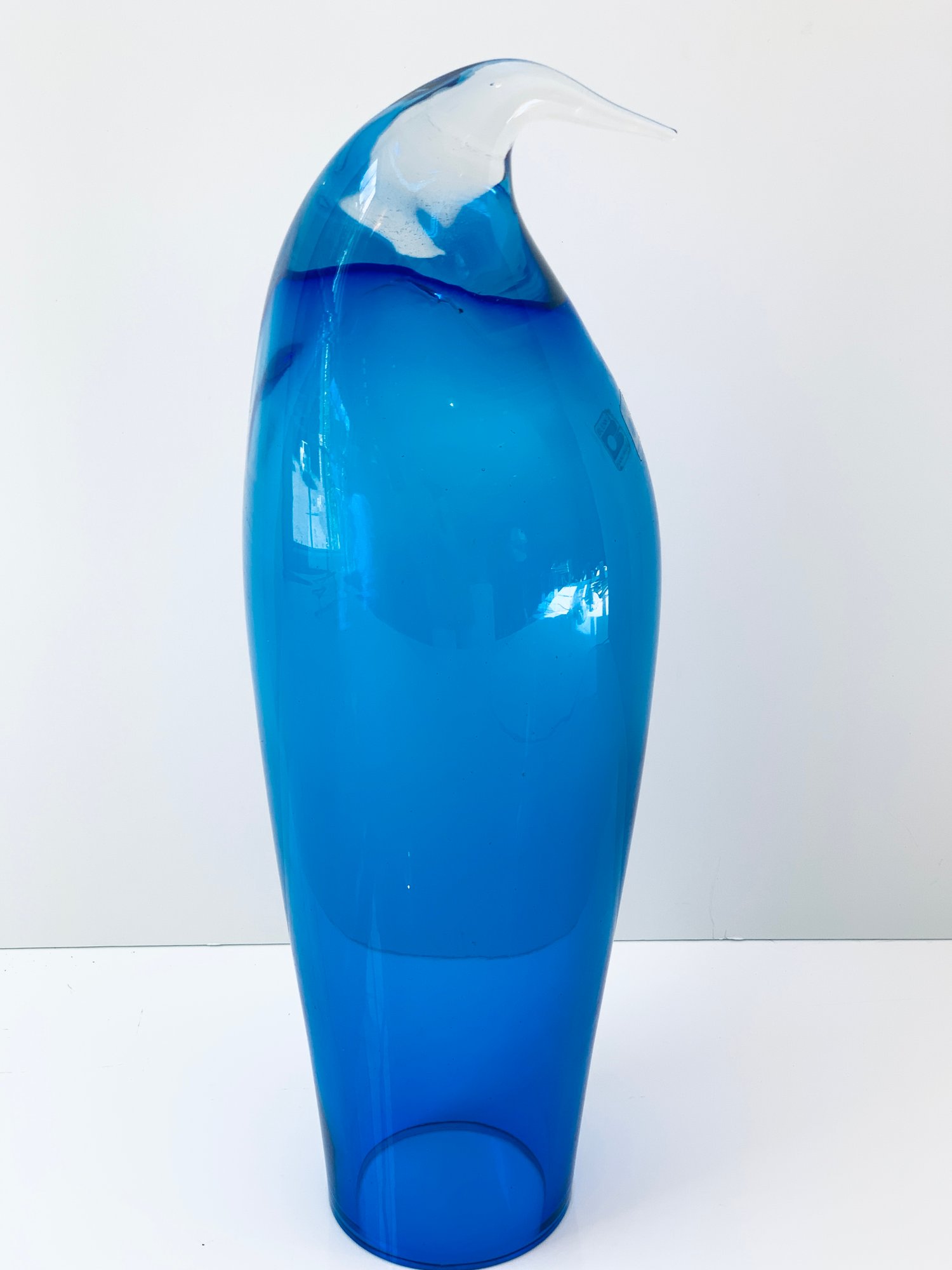 Blue glass penguin by Blenko Glass