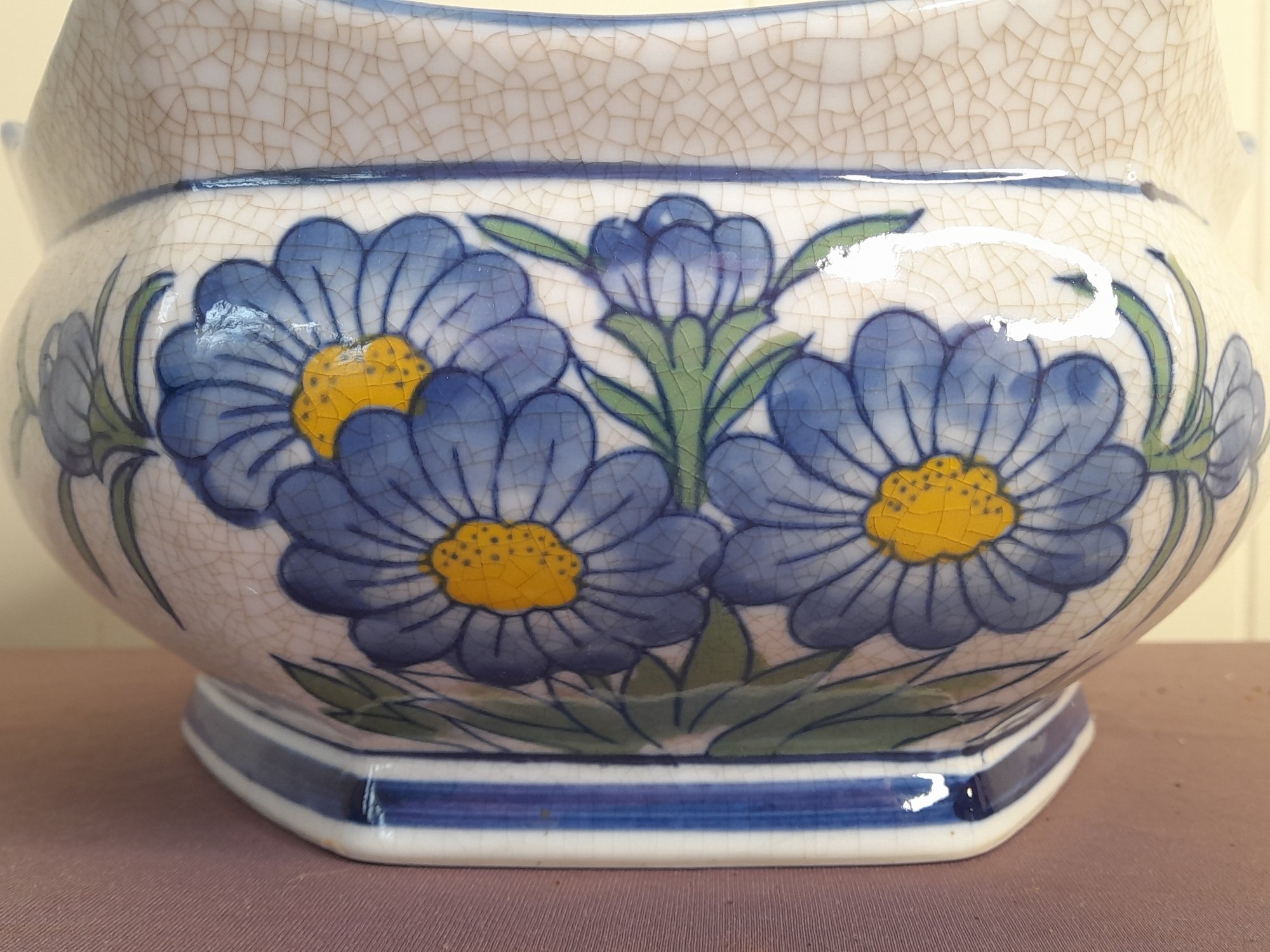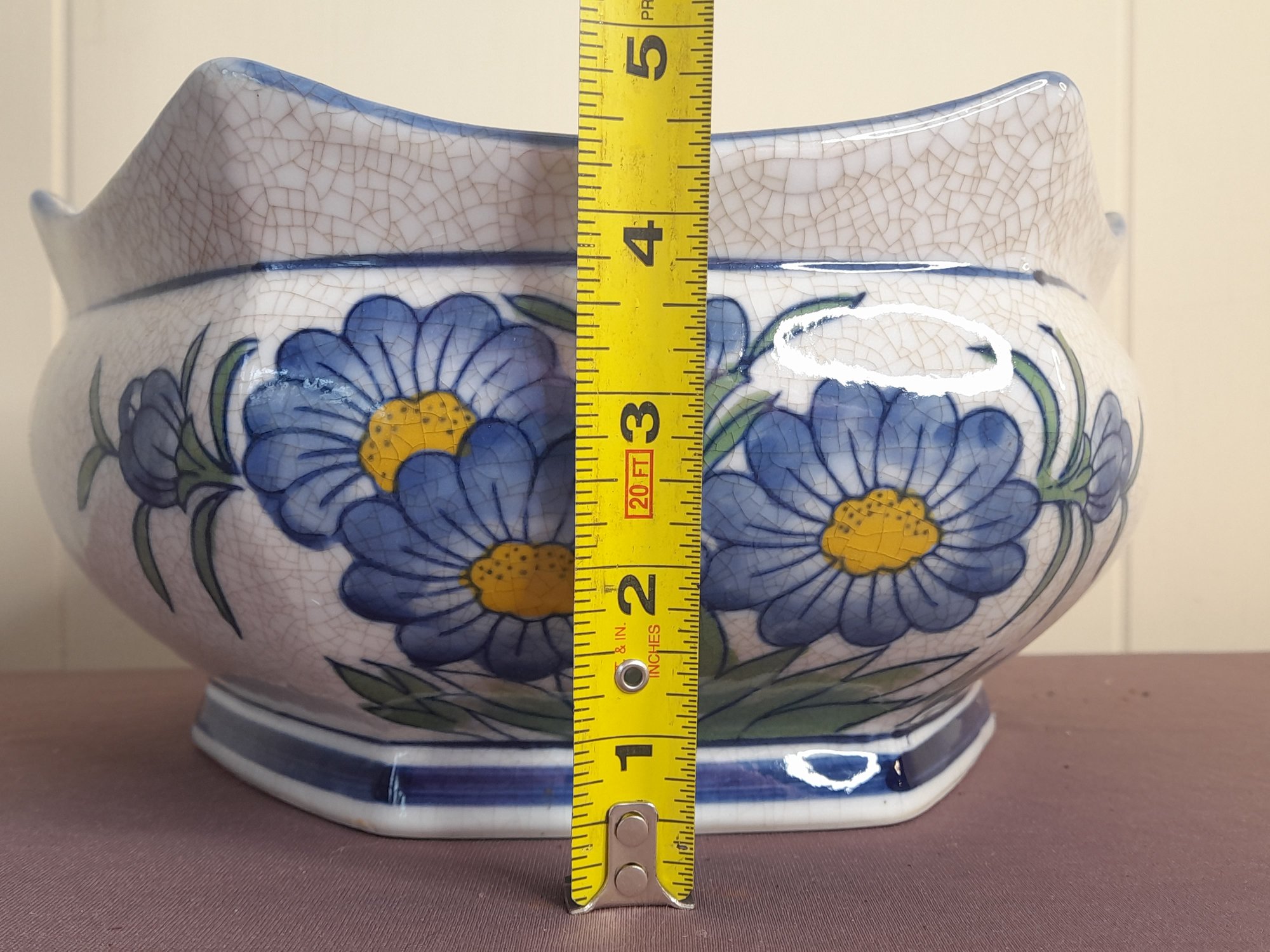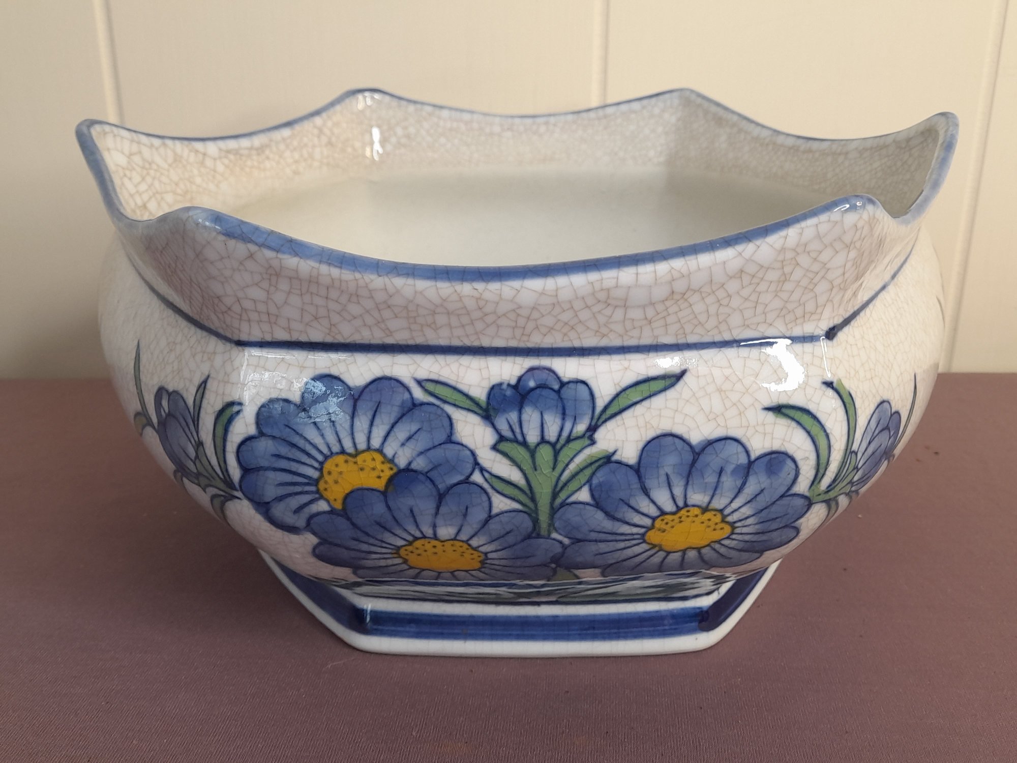 Vintage Blue Flower Crackled Planter/bowl