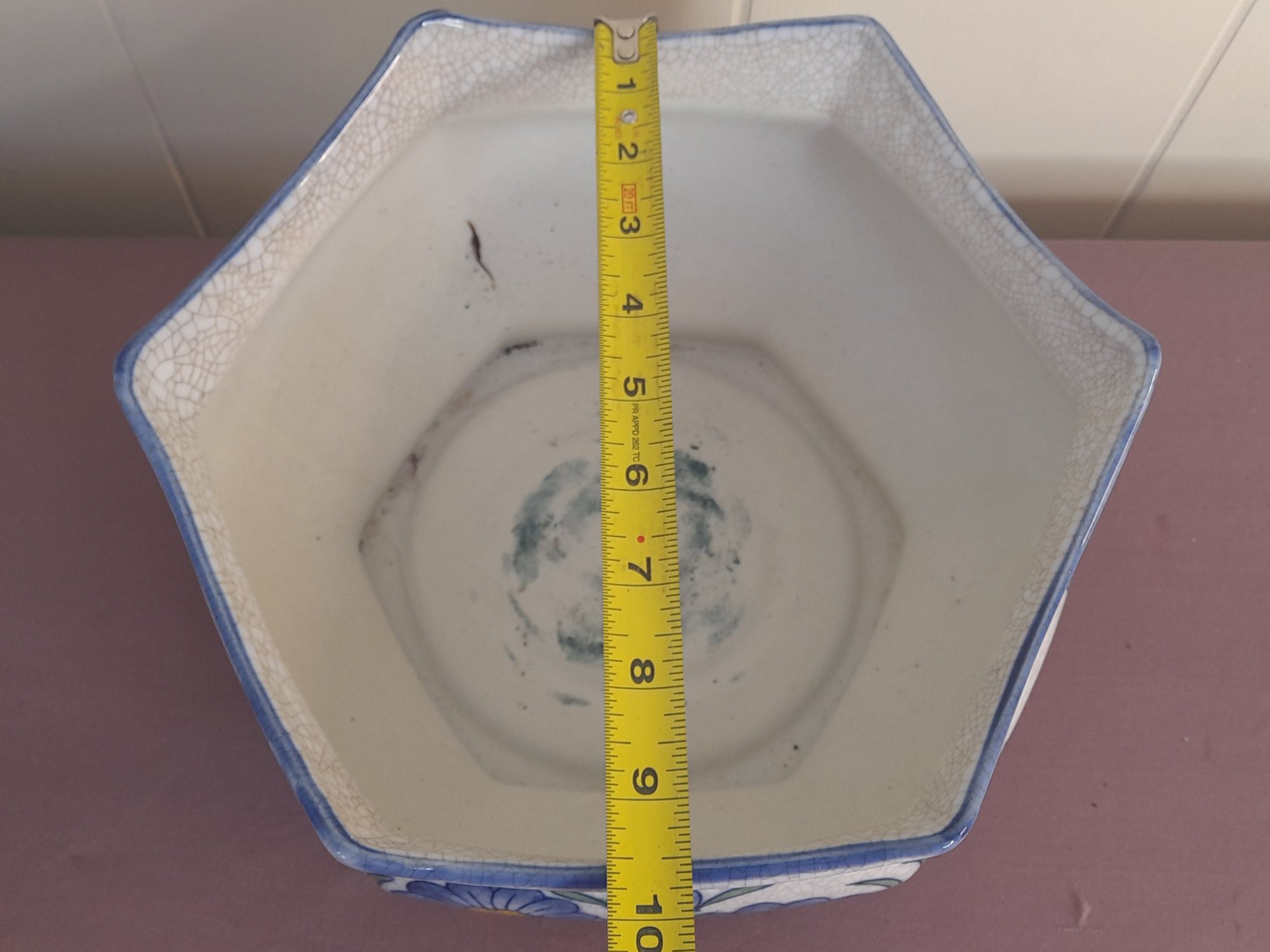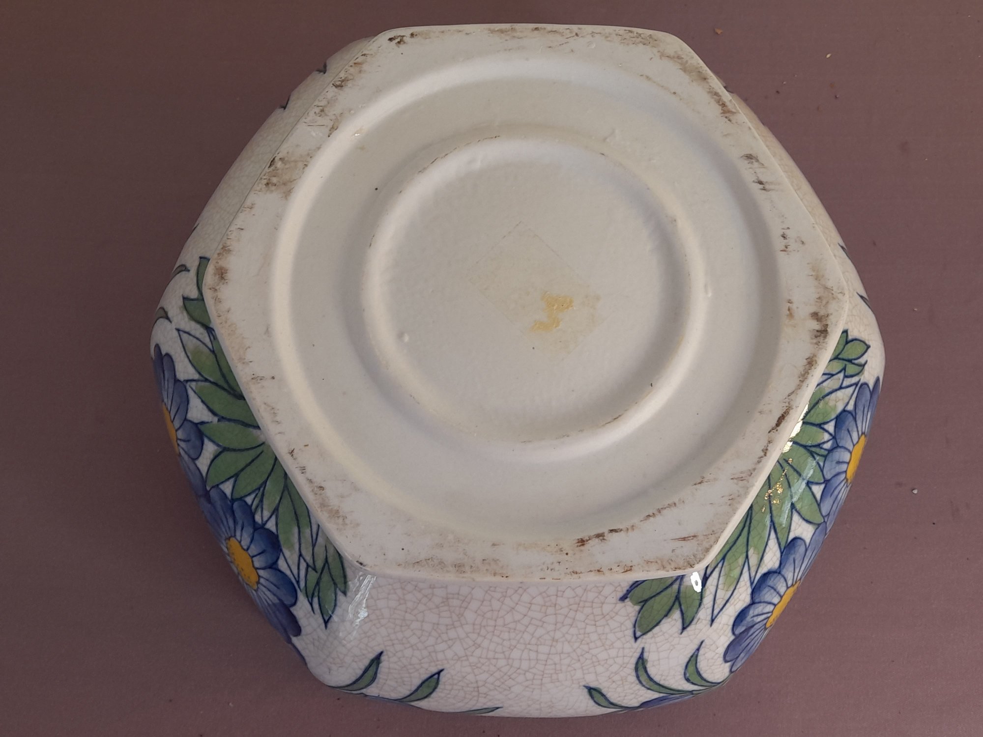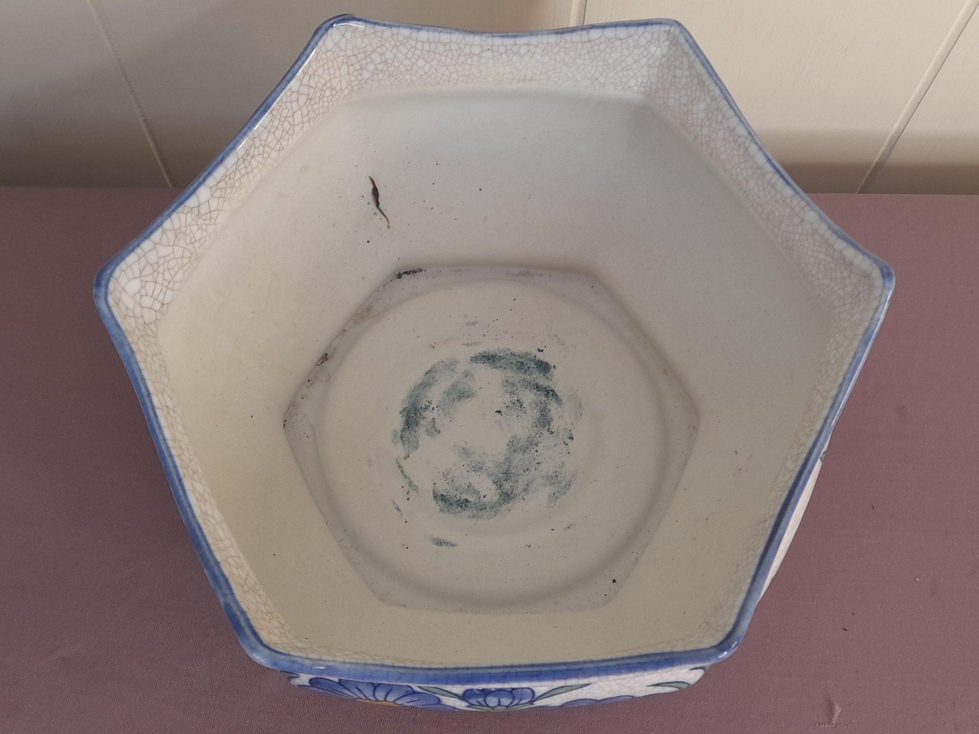 Vintage Blue Flower Crackled Planter/bowl
