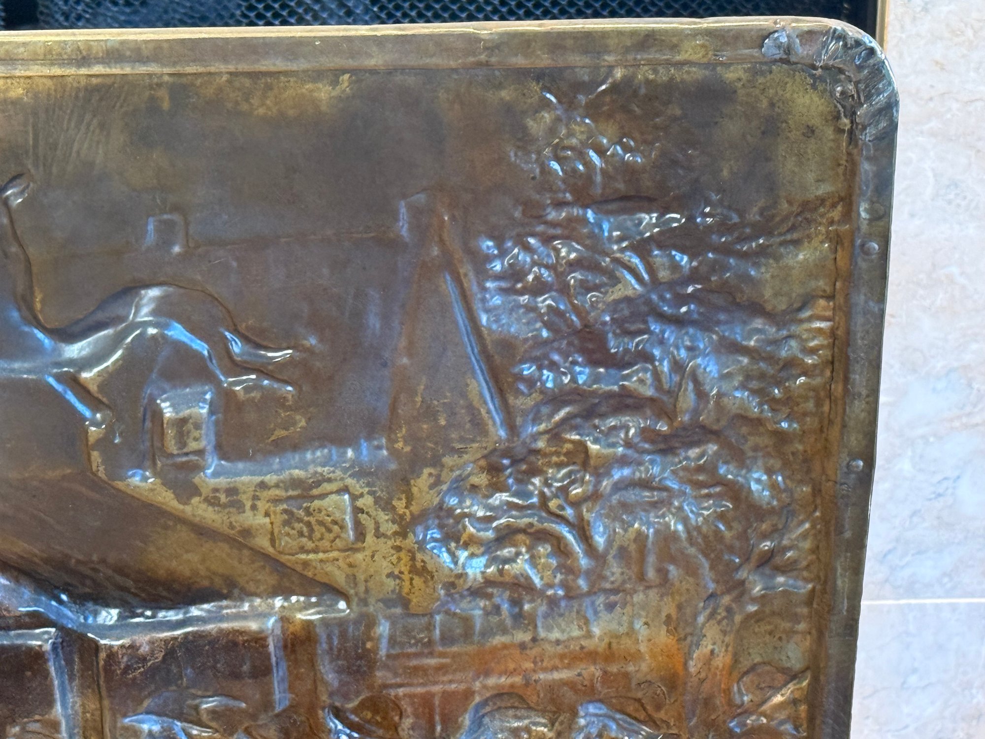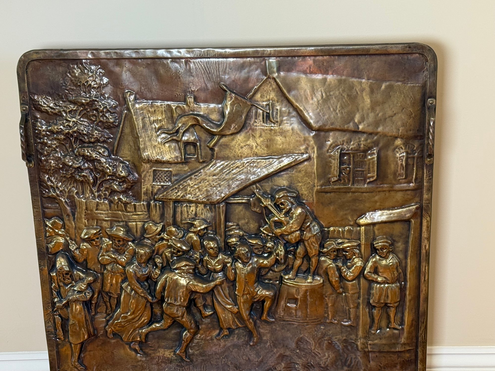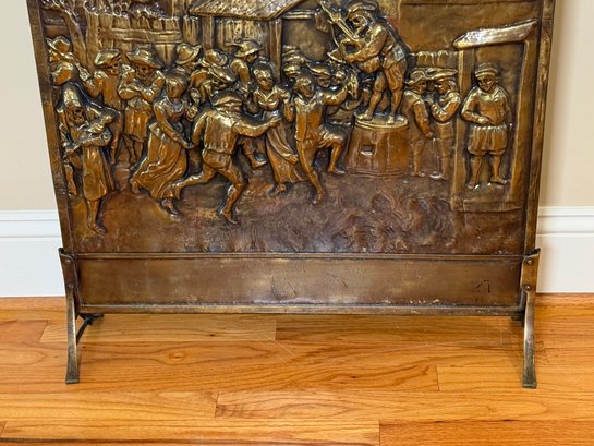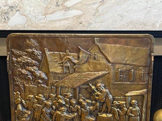 Vintage Brass Fireplace screen with embossed Tavern Scene