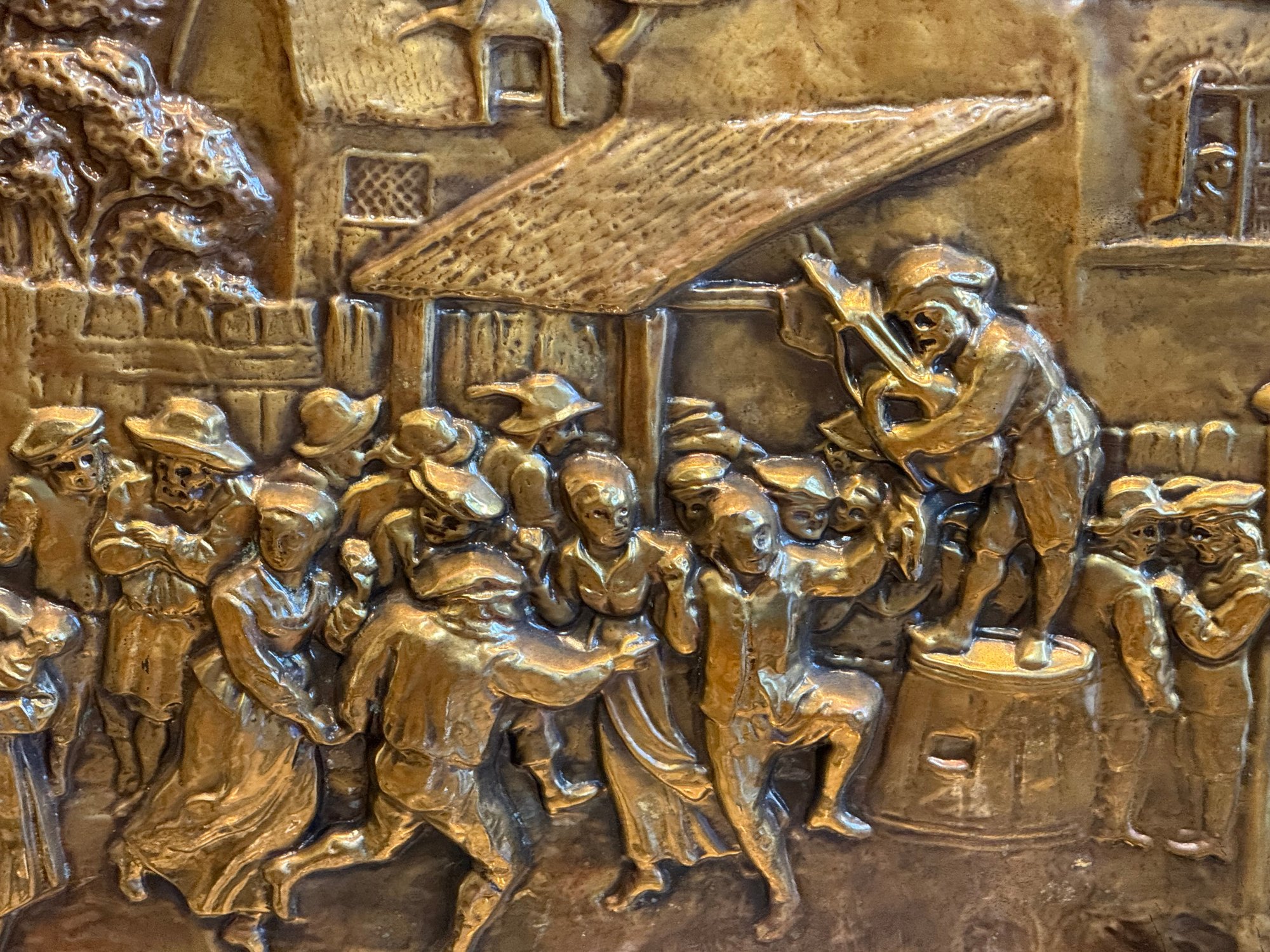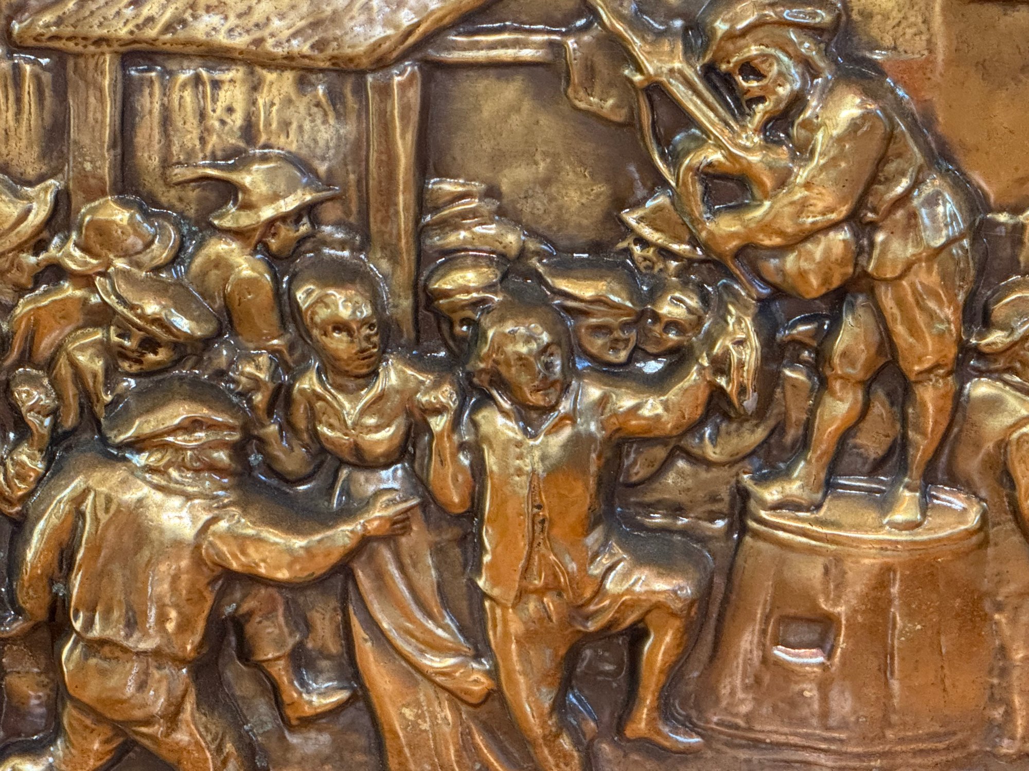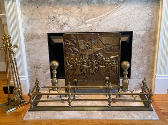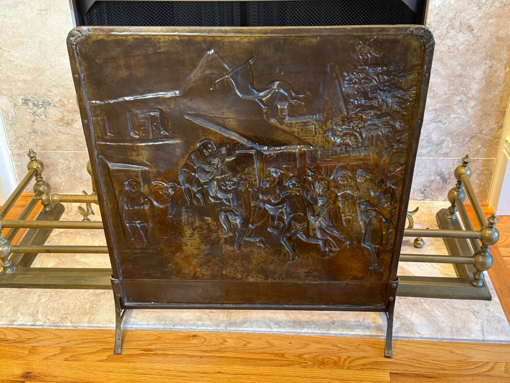 Vintage Brass Fireplace screen with embossed Tavern Scene