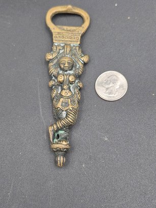 An early figural bottle opener, Art Deco era, in the form of a dancing Hindu idol. Solid brass, in very good overall condition.