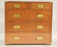 Vintage Campaign Style Dresser has five drawers with original brass hardware.