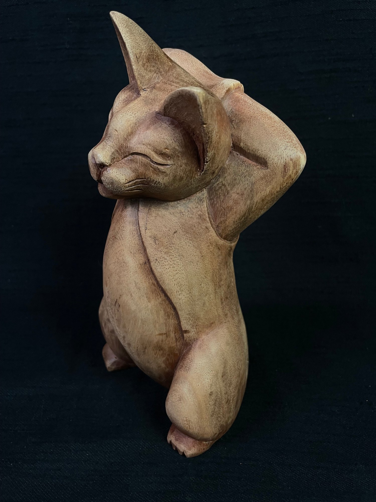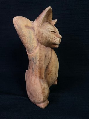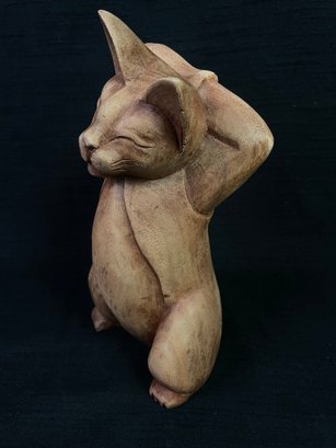 Vintage Carved Cat Statue Piece