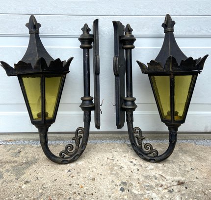 Lovely pair of vintage Italian-gothic style electric wall scones