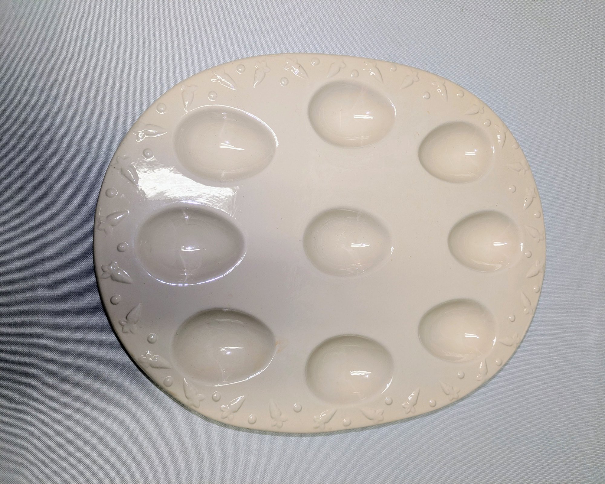 Adorable way to serve your Deviled Eggs or Display your Easter Eggs. Features Nine Well Egg Holders and an Adorable Carrot Design Along the Trim. Some light marks on the bottom are consistent with age and movement. Overall, Very Good Vintage Condition. Please see all photos as part of the description and condition. 12" x 10"