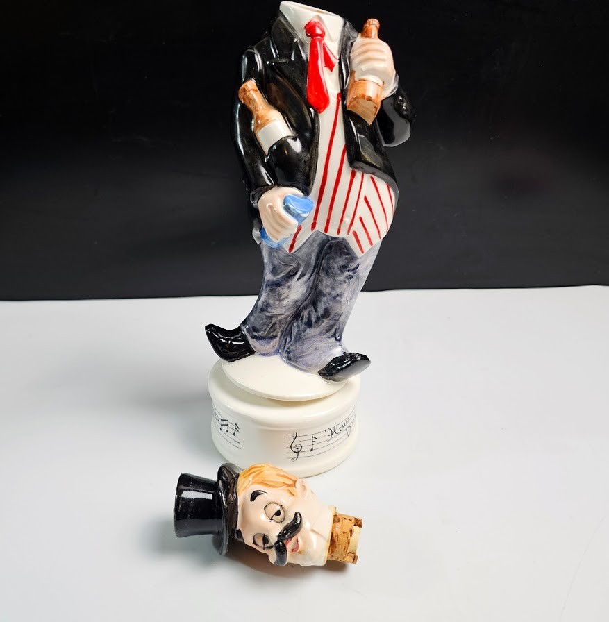 Vintage ceramic musical liquid decanter "How Dry I Am" melody