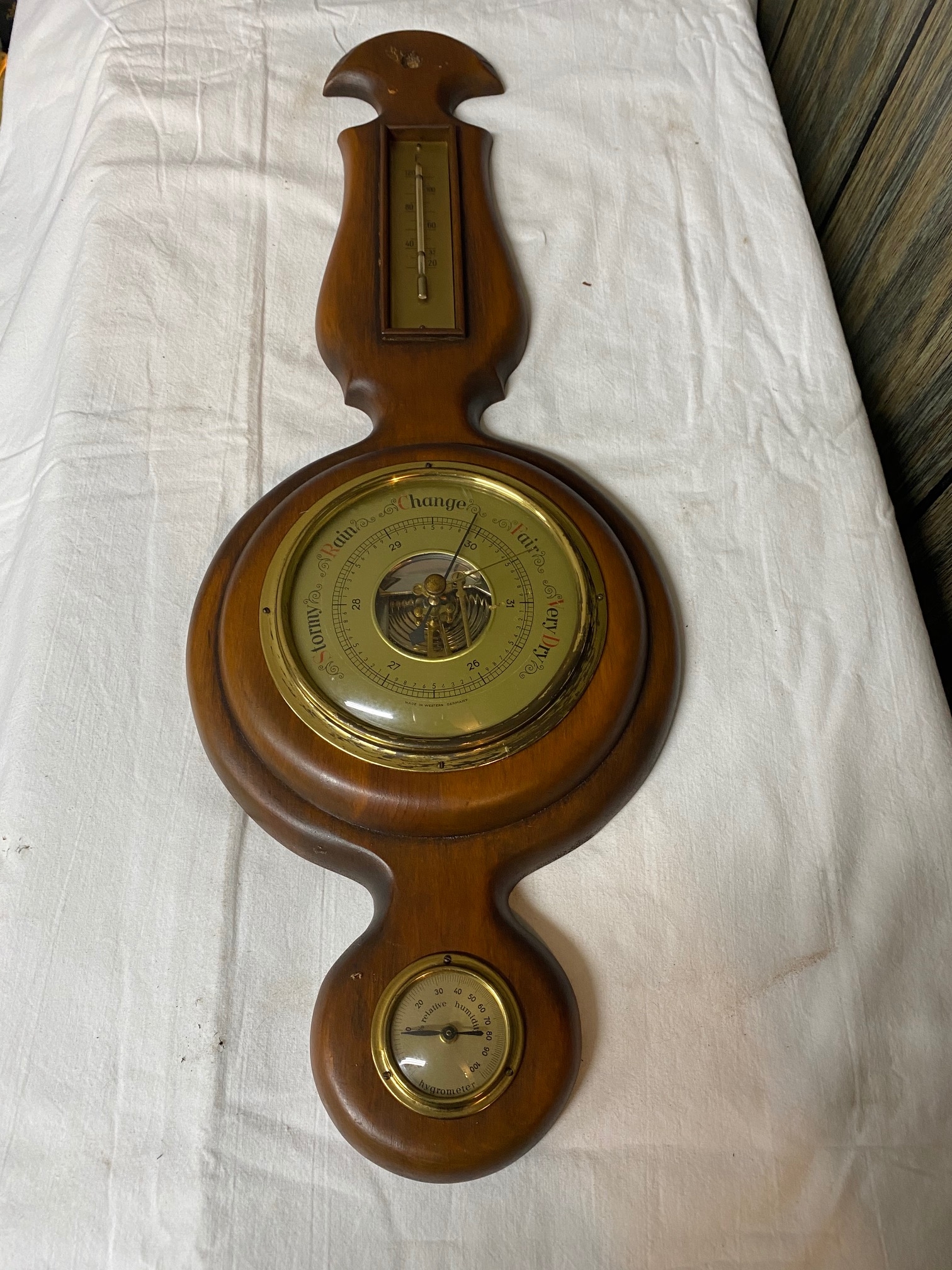Small scratches on wood, metal finish is fading but overall good condition.