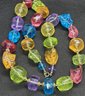 Vibrantly colored, with freeform lucite beads. Meant to be seen and admired. Condition is very good.