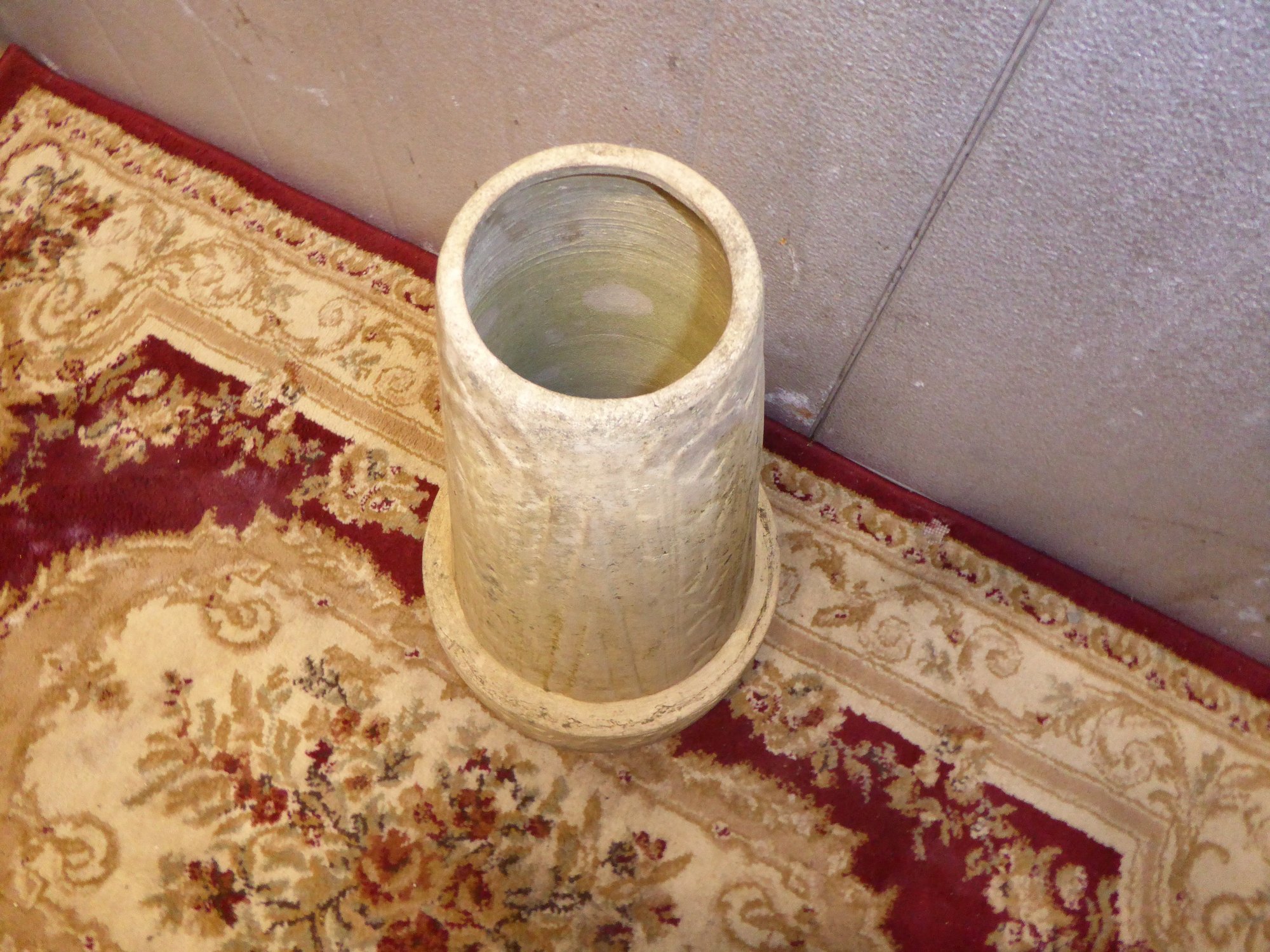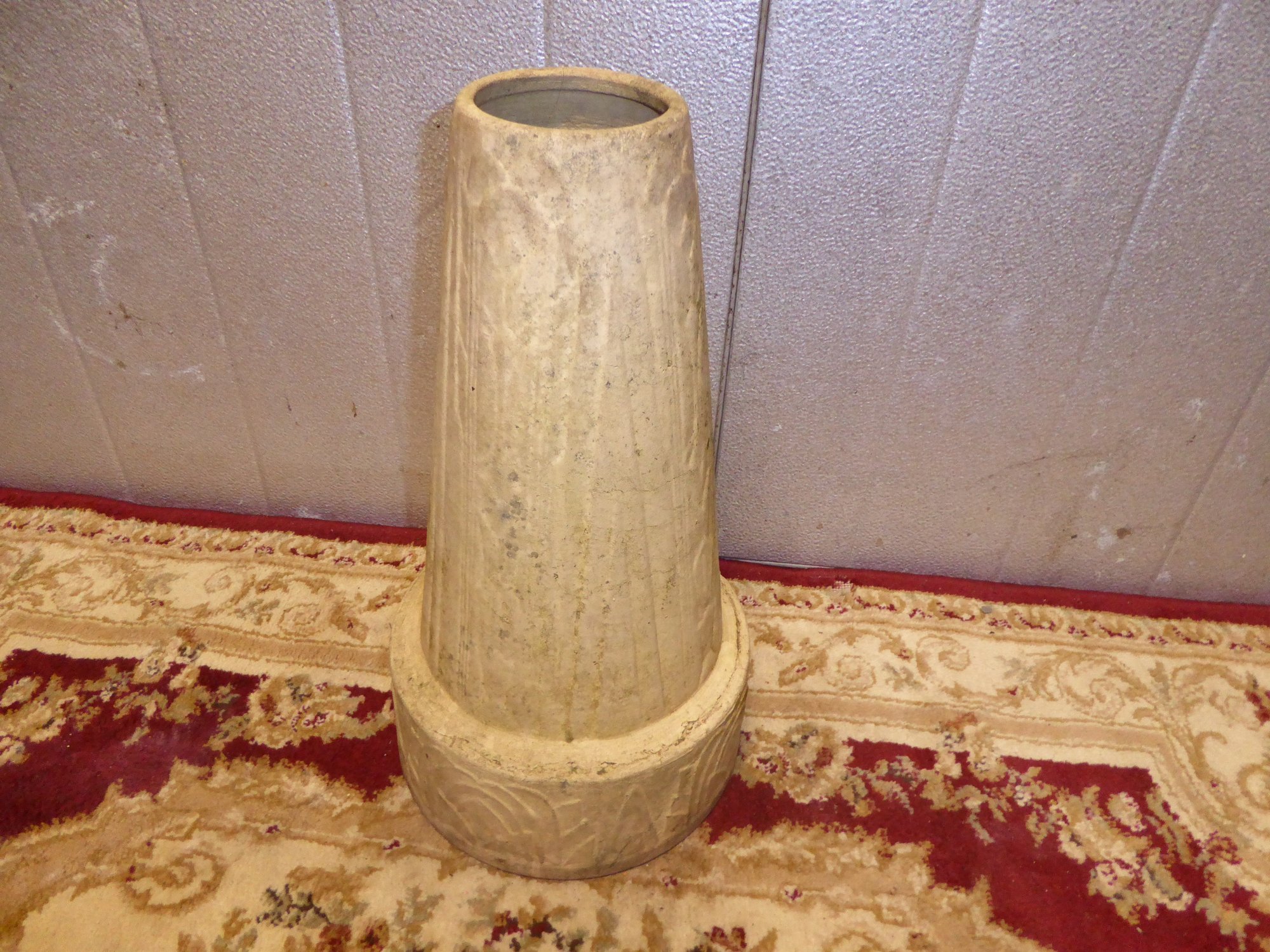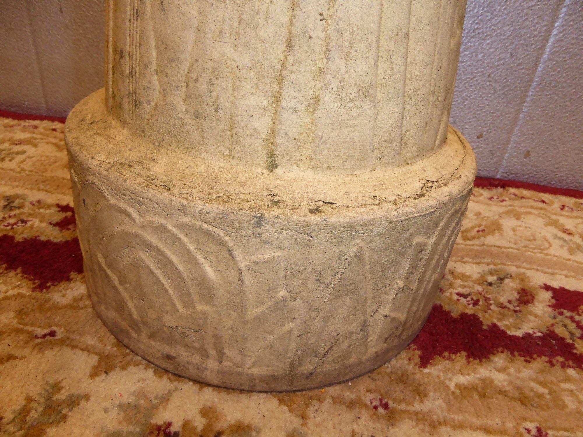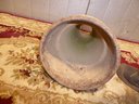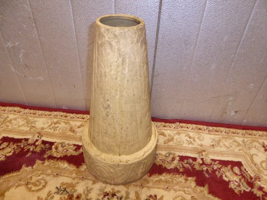 Vintage Clay Bird Bath Base With Geometric Pattern
