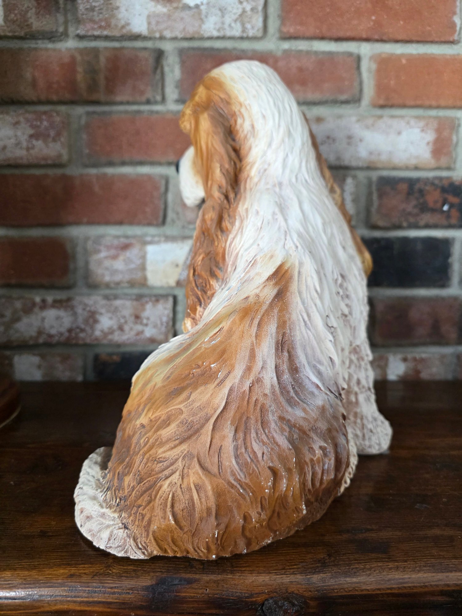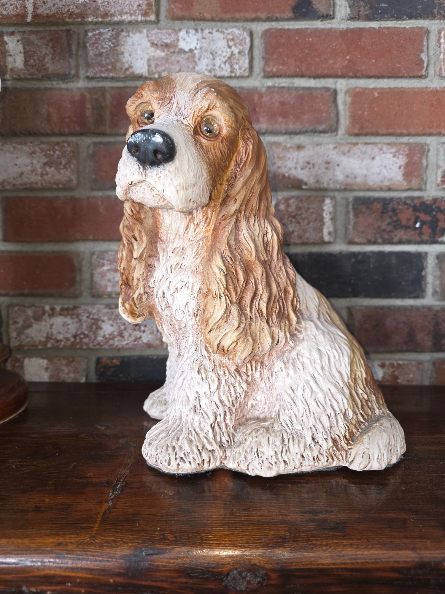 Vintage 1982 Hand Painted Chalkware Cocker Spaniel Figurine. Universal Statuary Corp. Marked. Felt Bottom. Very Collectable. See photos for condition.