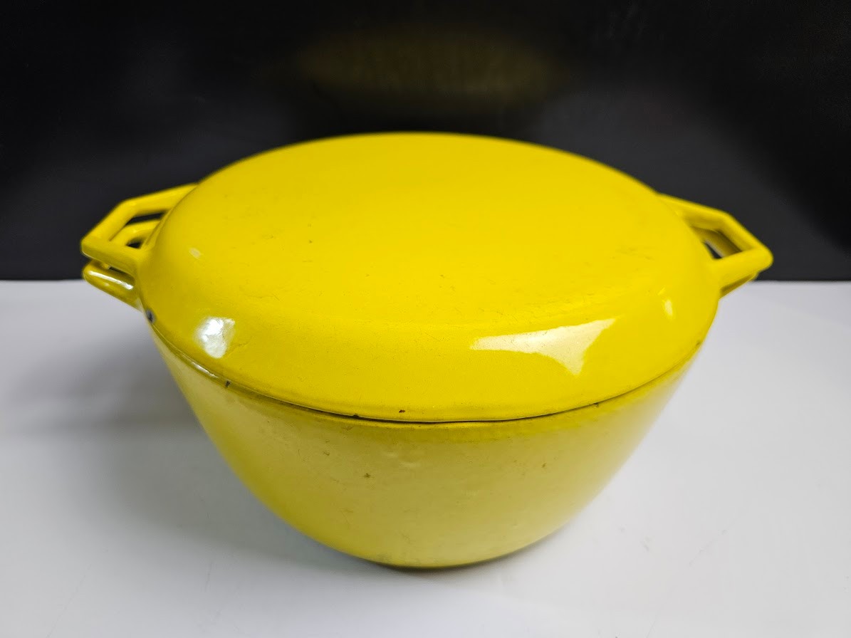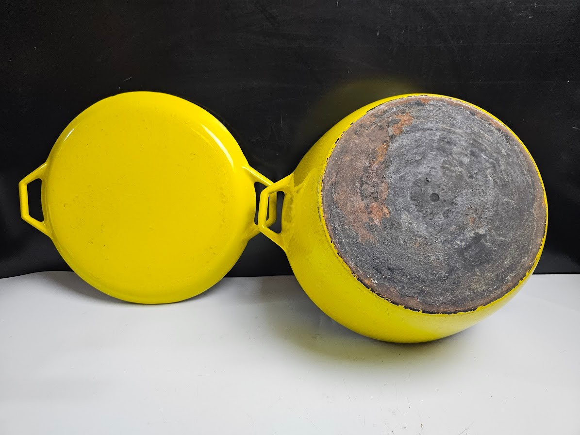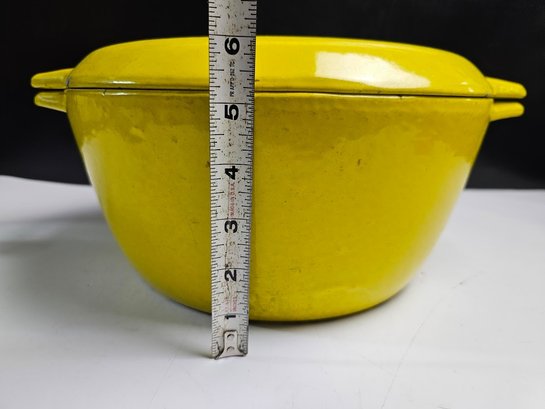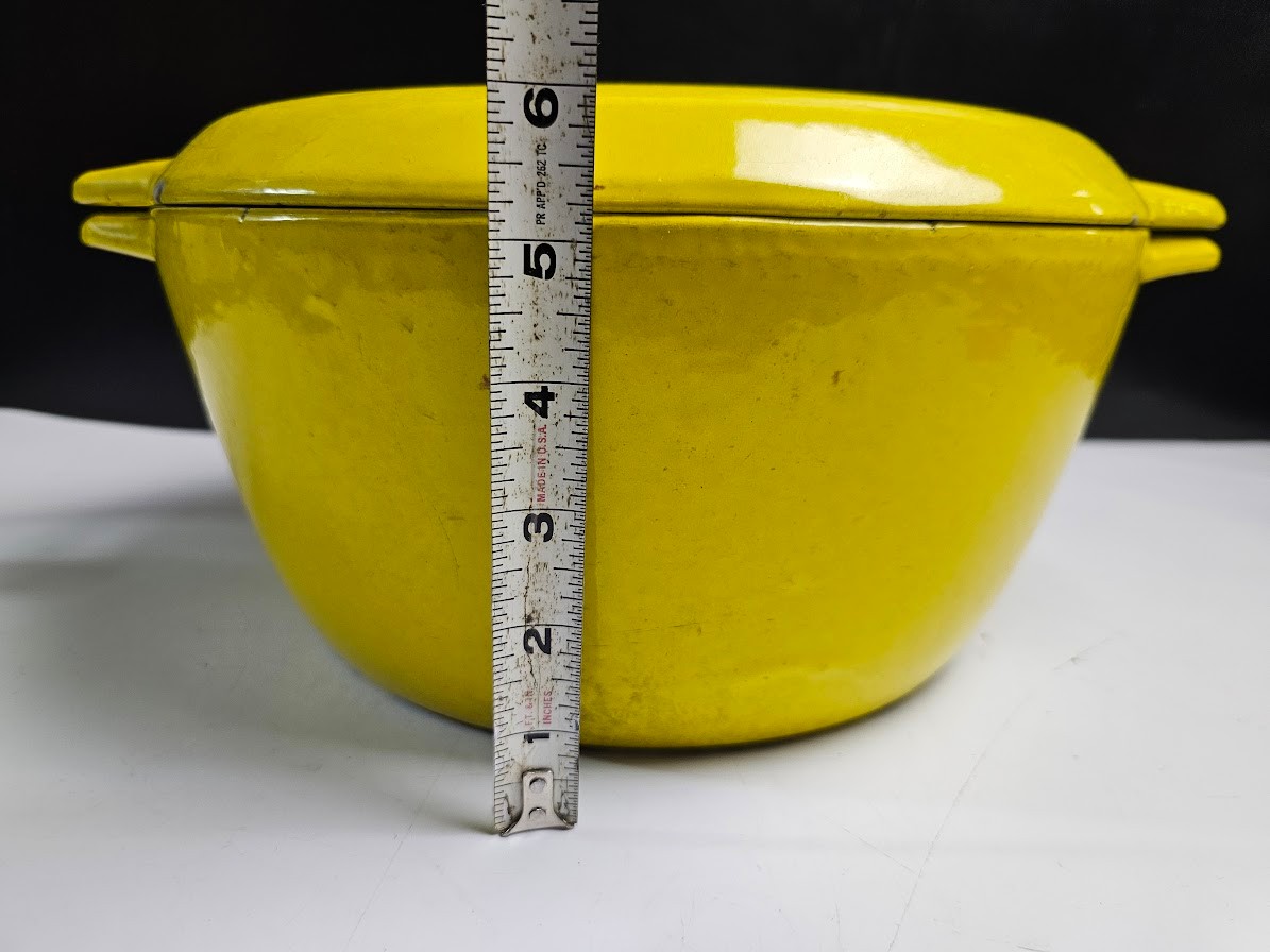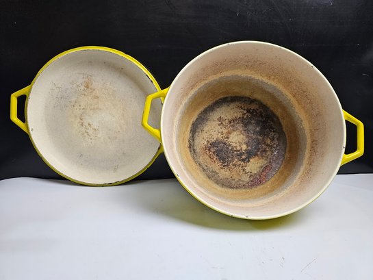 Very Cool Vintage Copco Yellow Enameled Cast Iron Dutch Oven. CLEAN THIS UP AND IT WILL LAST FOREVER
