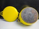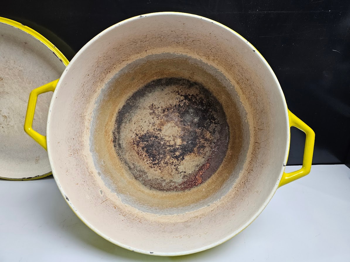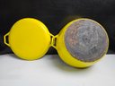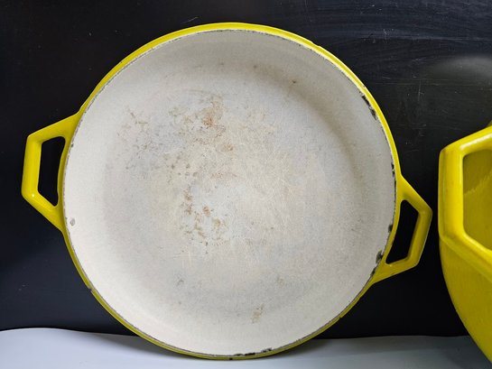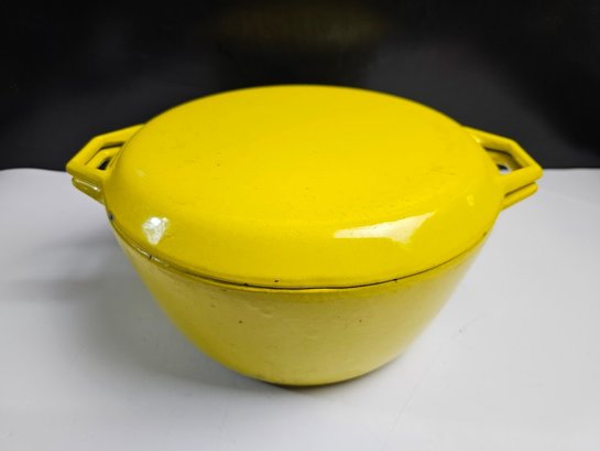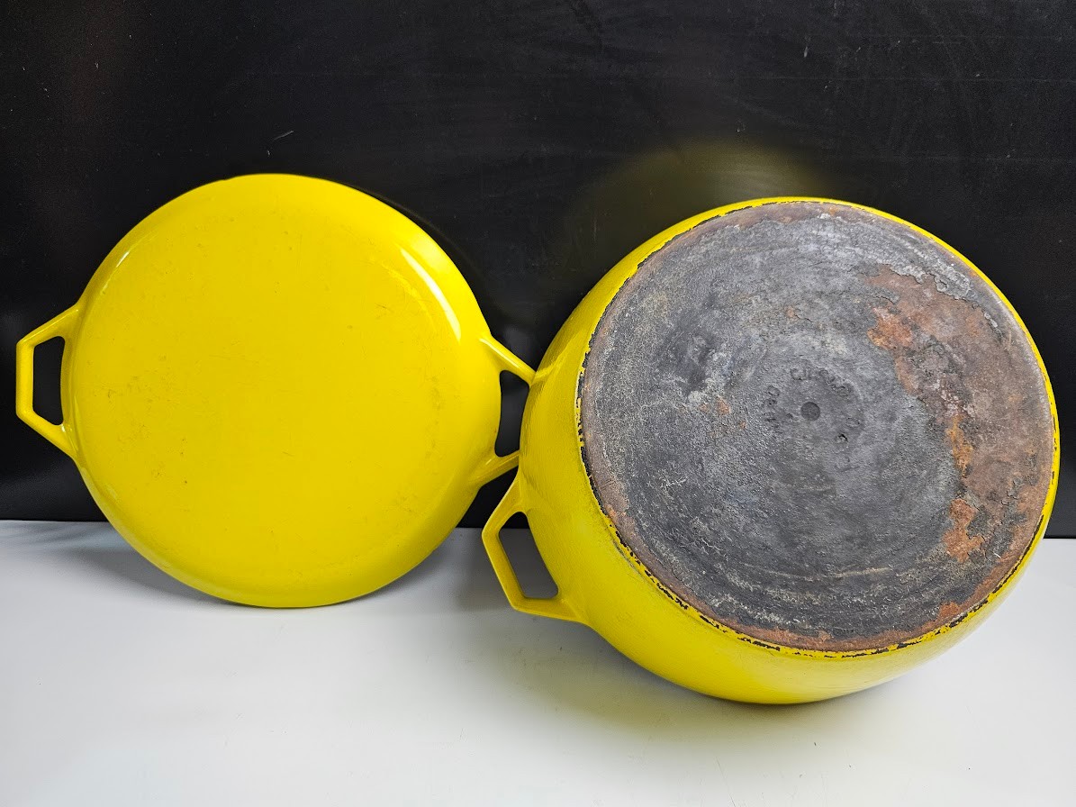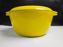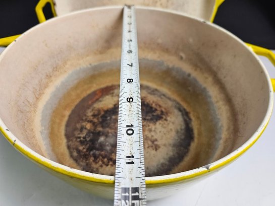 Very Cool Vintage Copco Yellow Enameled Cast Iron Dutch Oven. CLEAN THIS UP AND IT WILL LAST FOREVER