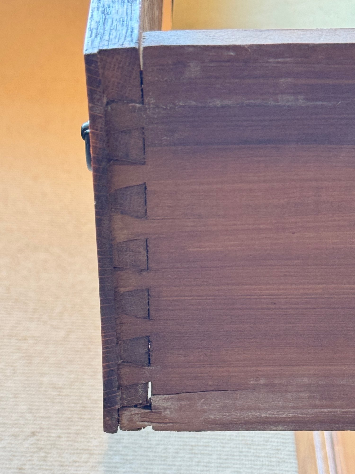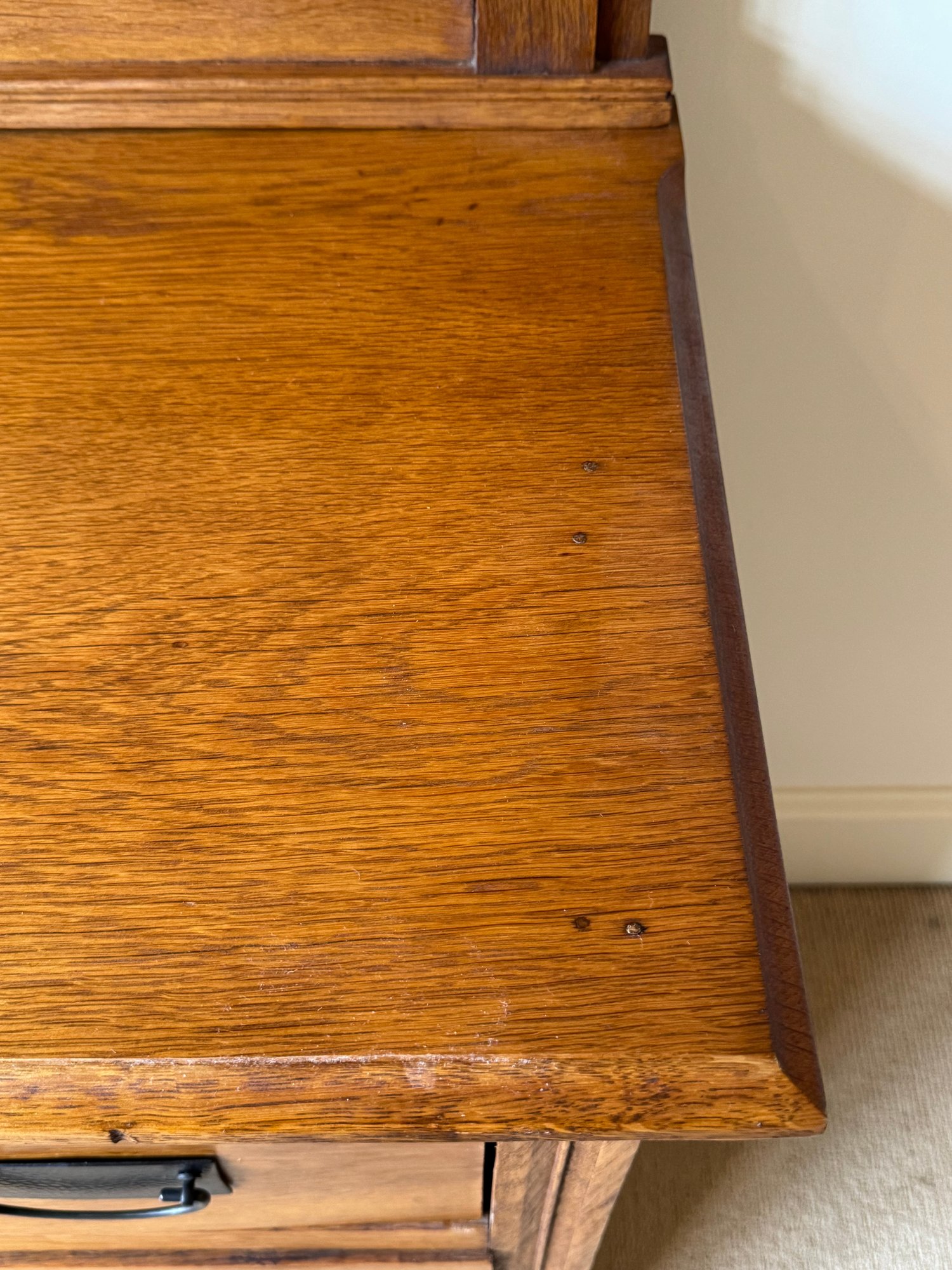 Has a small age split on top right corner drawer otherwise in very nice condition. Size 40 L x 18 D x 34 H dresser top x 77 H as shown