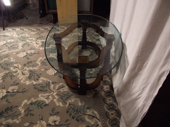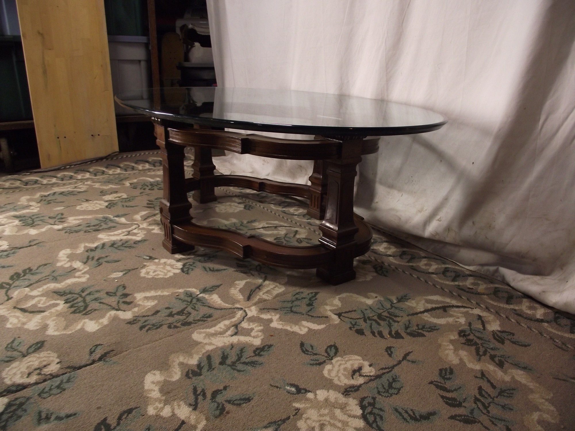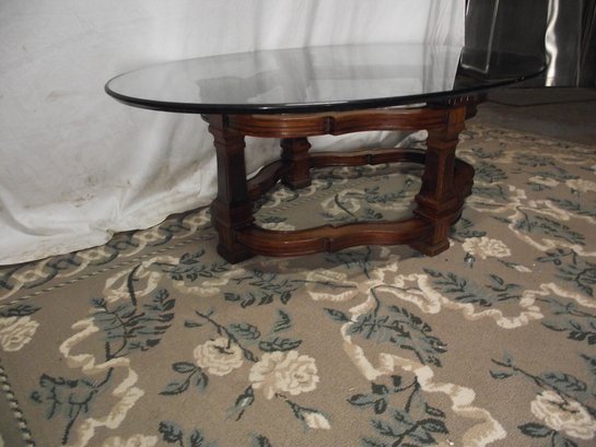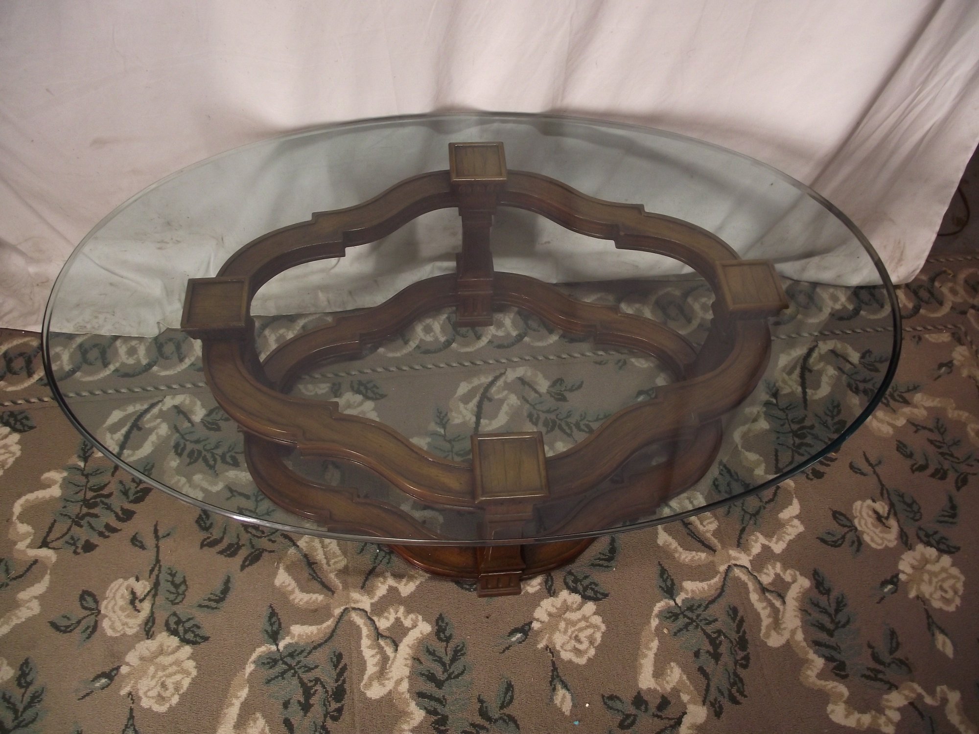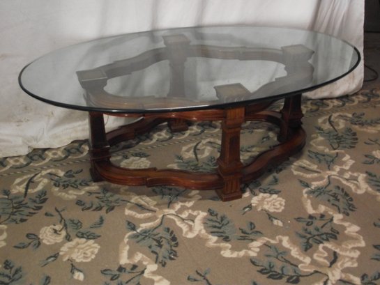 VINTAGE DREXEL HERITAGE FRANCESCA OVAL GLASS CENTER TABLE. SEE PHOTOS FOR CONDITION.