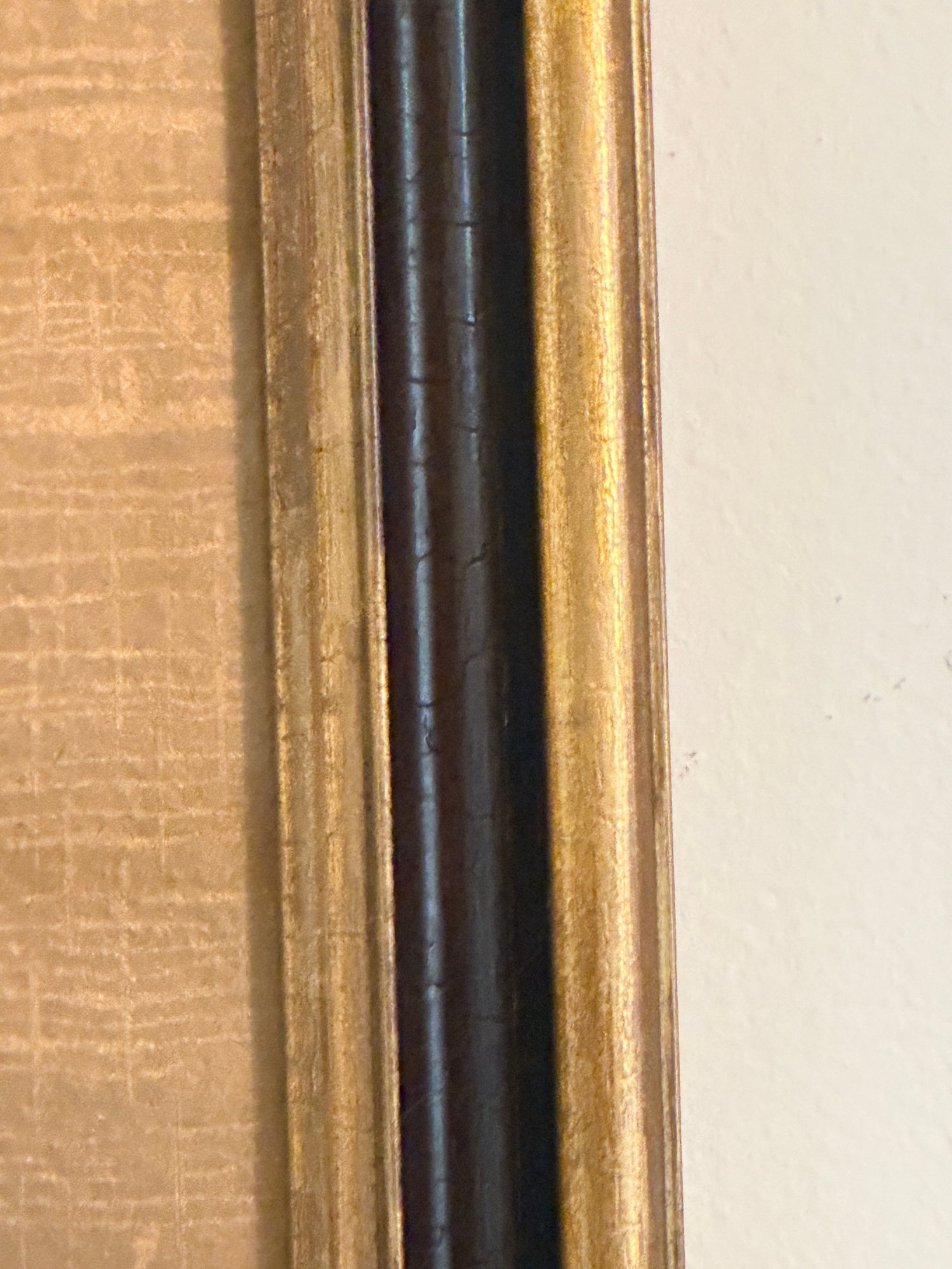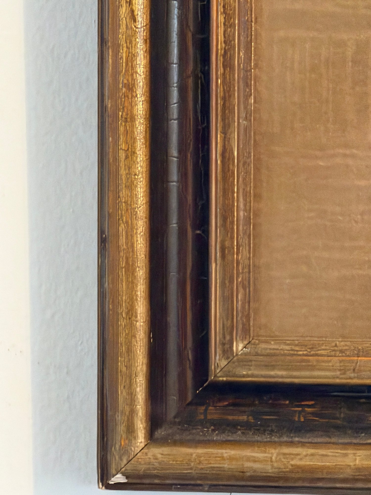 Good vintage condition, beautifully framed in gilt and blac wood frame.