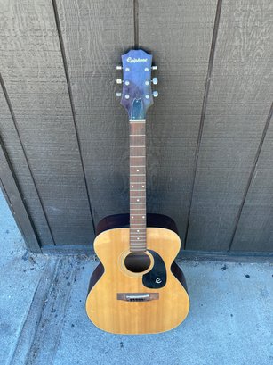 please view photos guitar has no strings and is missing one bridge pin.