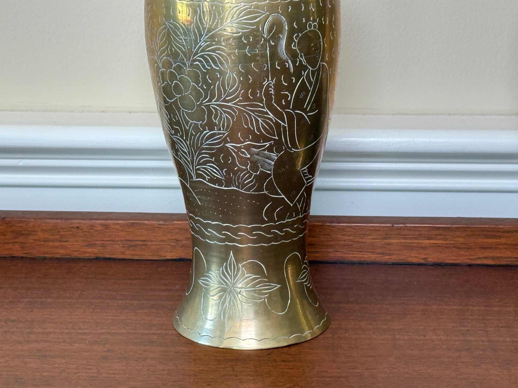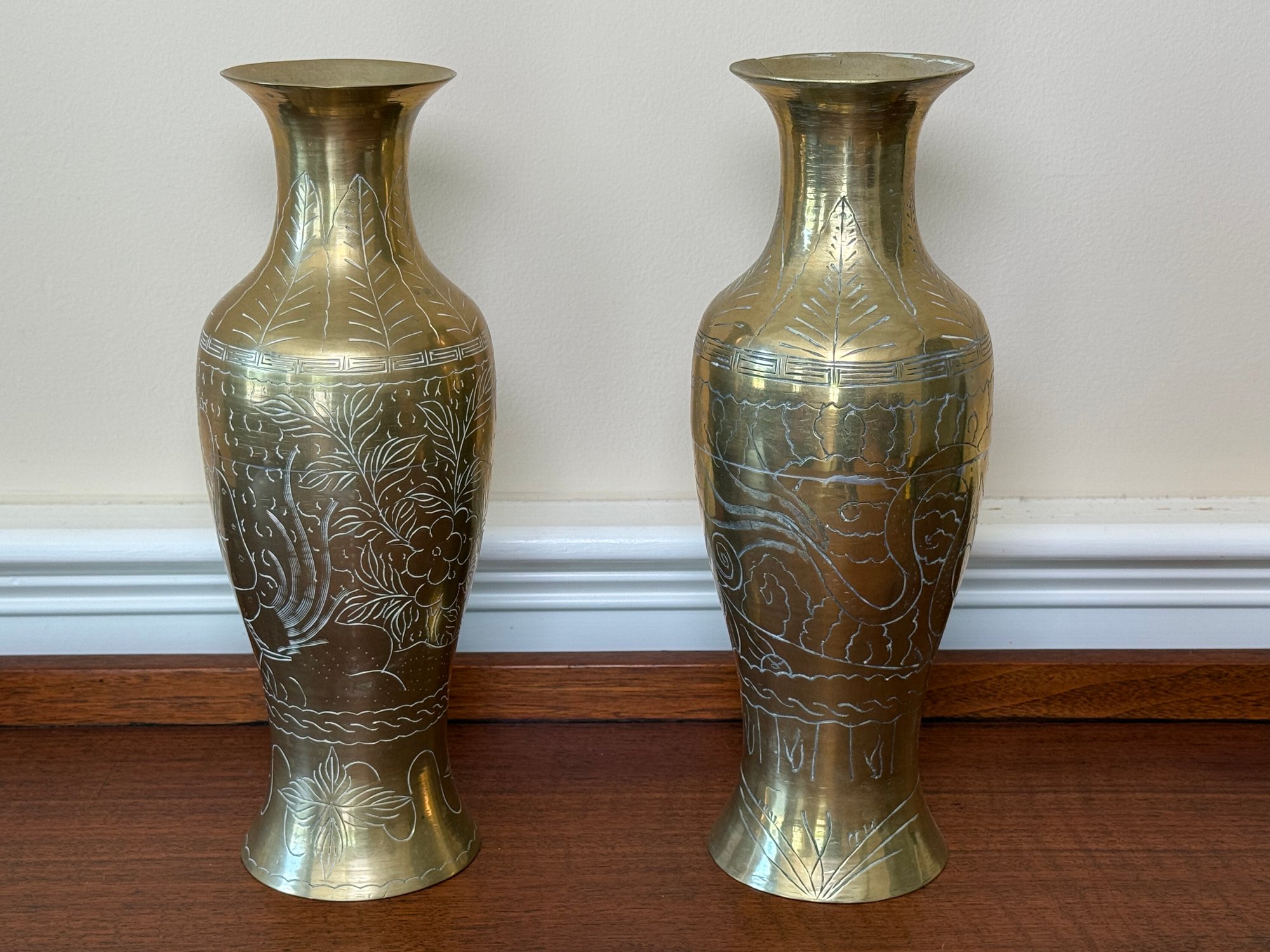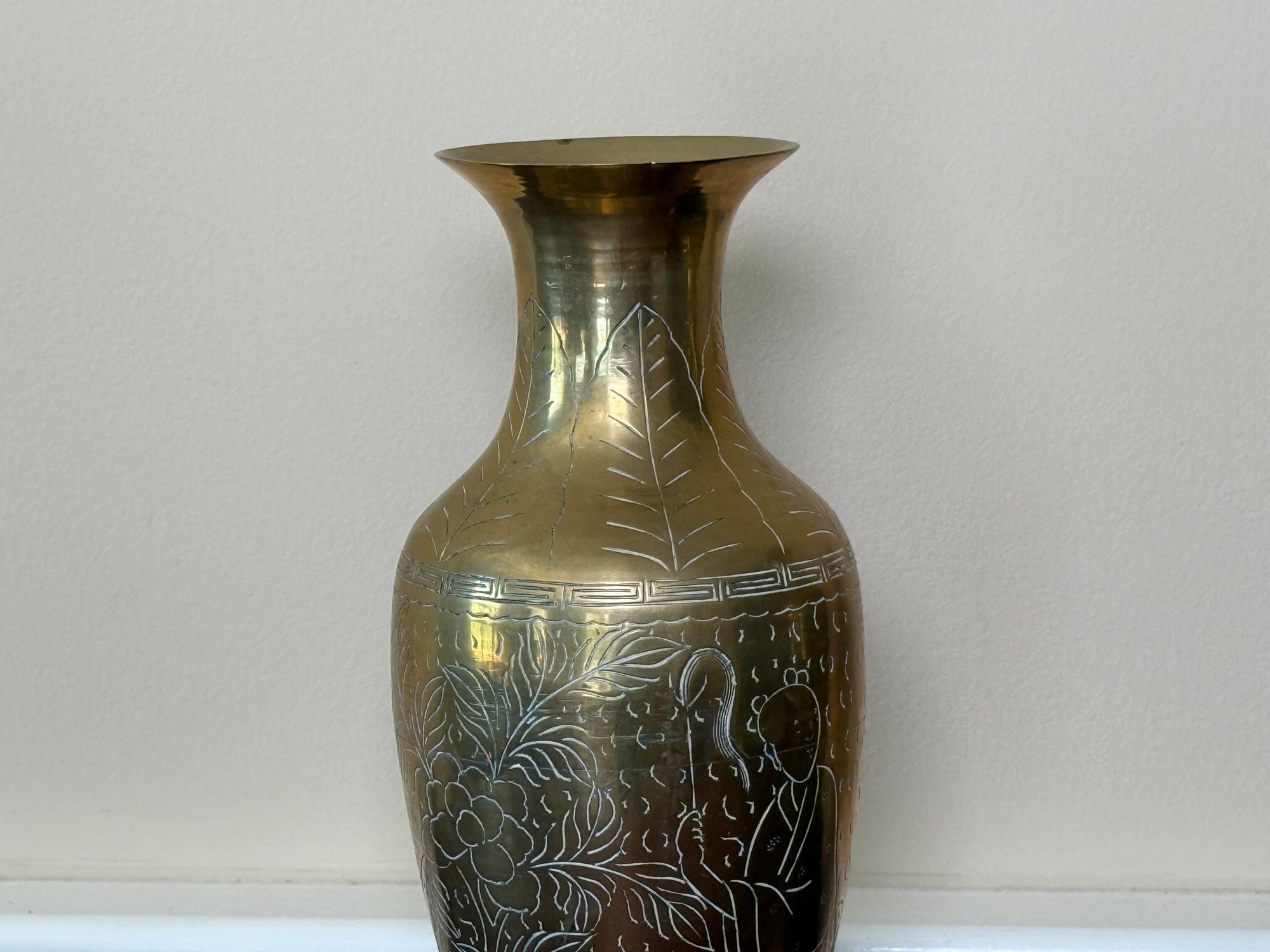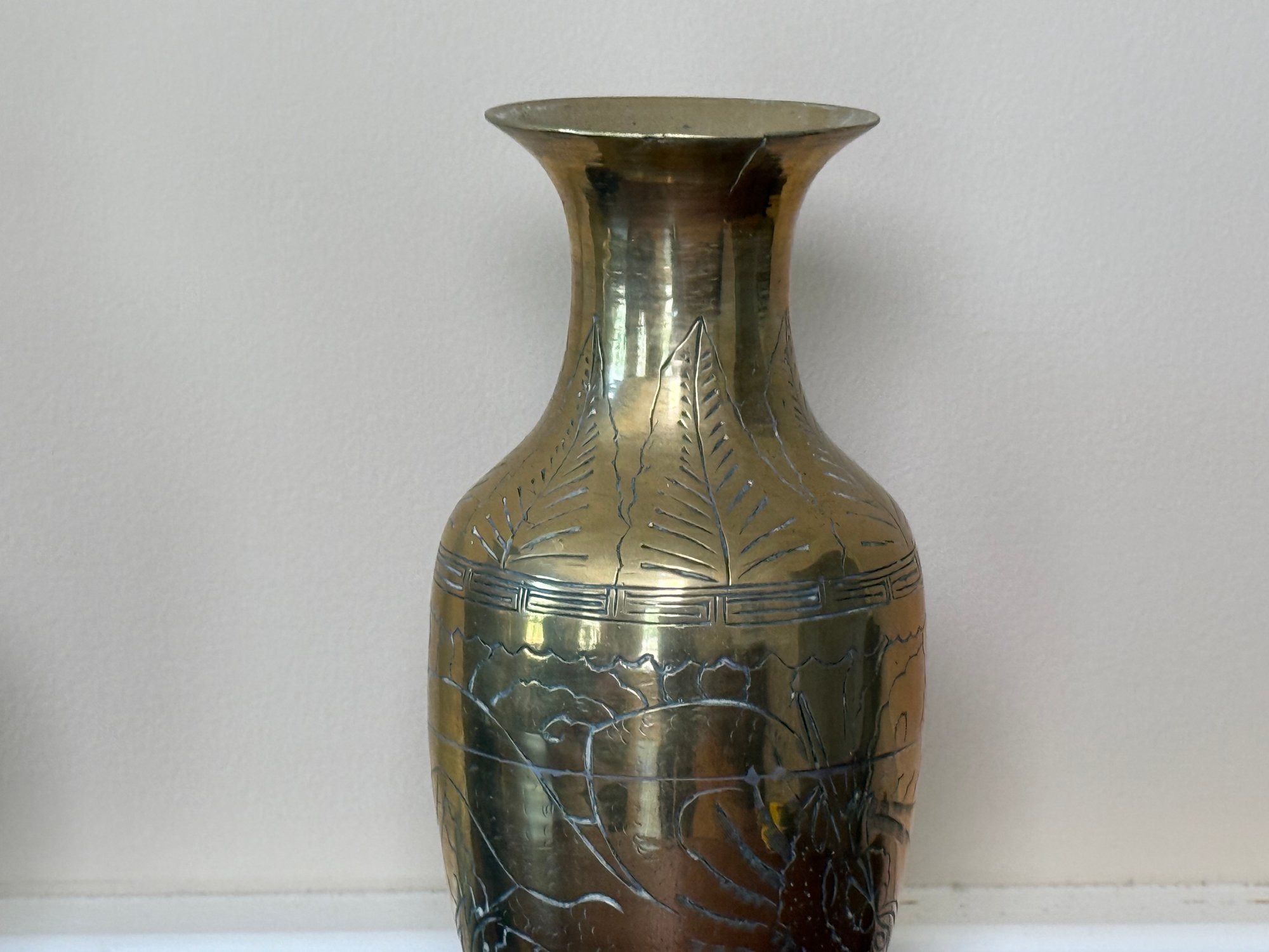 A beautiful pair of vintage etched brass vases. They are a nice size and make a statement.
