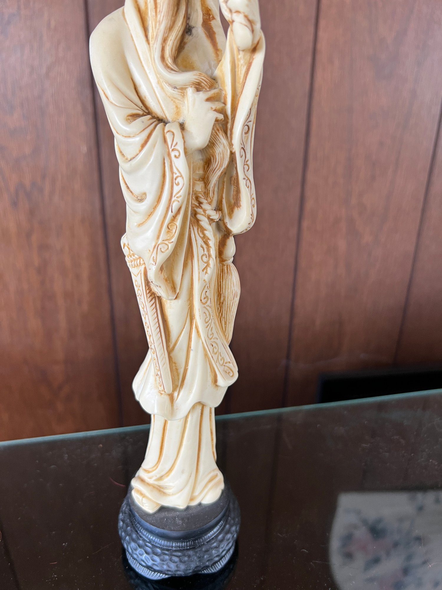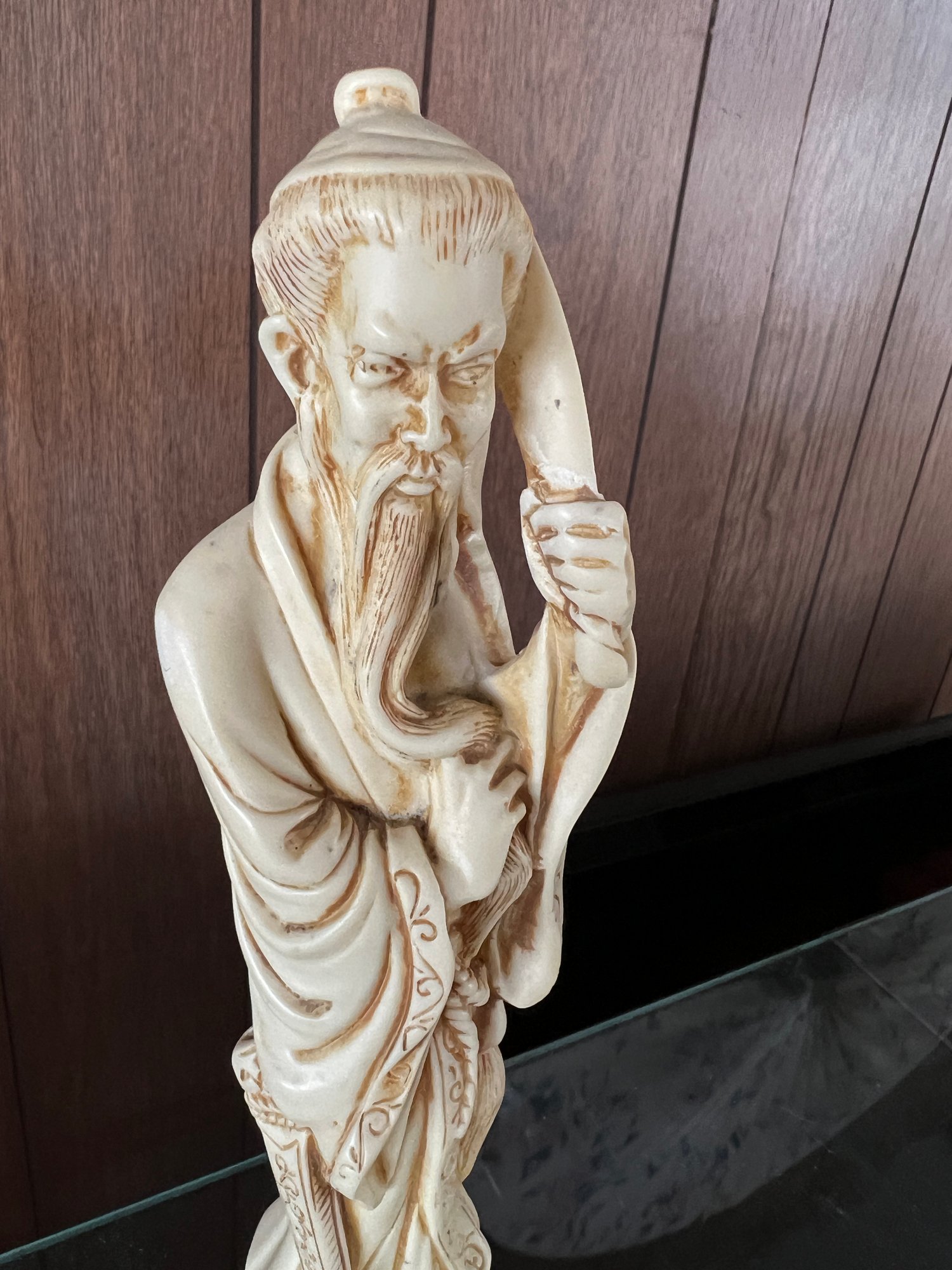 Vintage Italian-made, Chinese-inspired figurine in a resin made to mimic carved ivory.