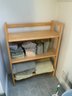 Blond wood shelf unit made by Apple Furniture in Thailand. Excellent construction, much better than more recent versions of this style. Super sturdy with brass hinges and shelf supports. Does not include contents. Photo 8 shows the unit folded and is from the furniture website.