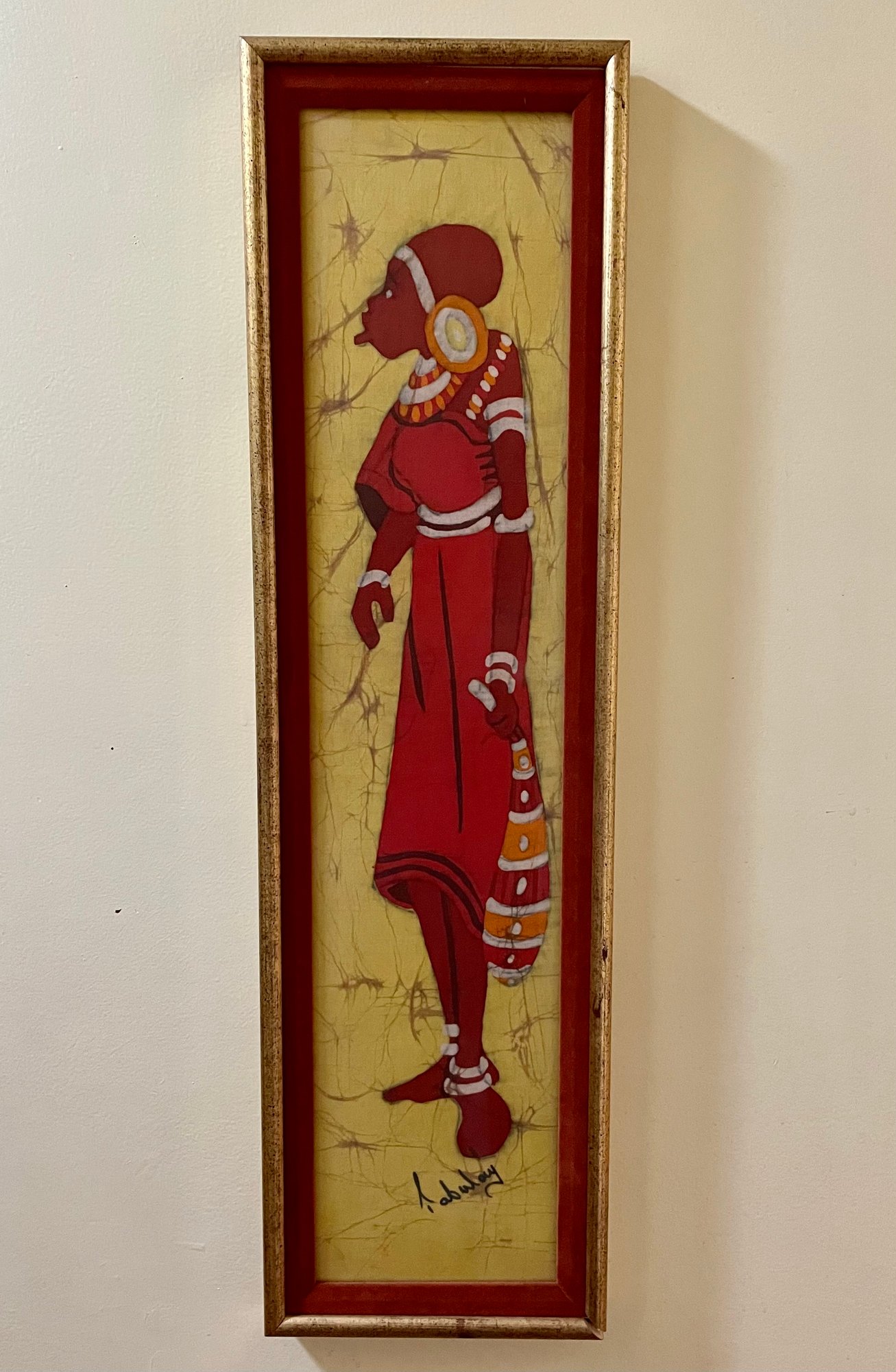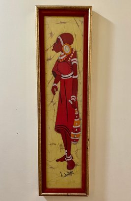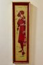 This painting appears to be done on cloth. I love the long and narrow look of it. It is signed on the lower right and it's nicely framed.