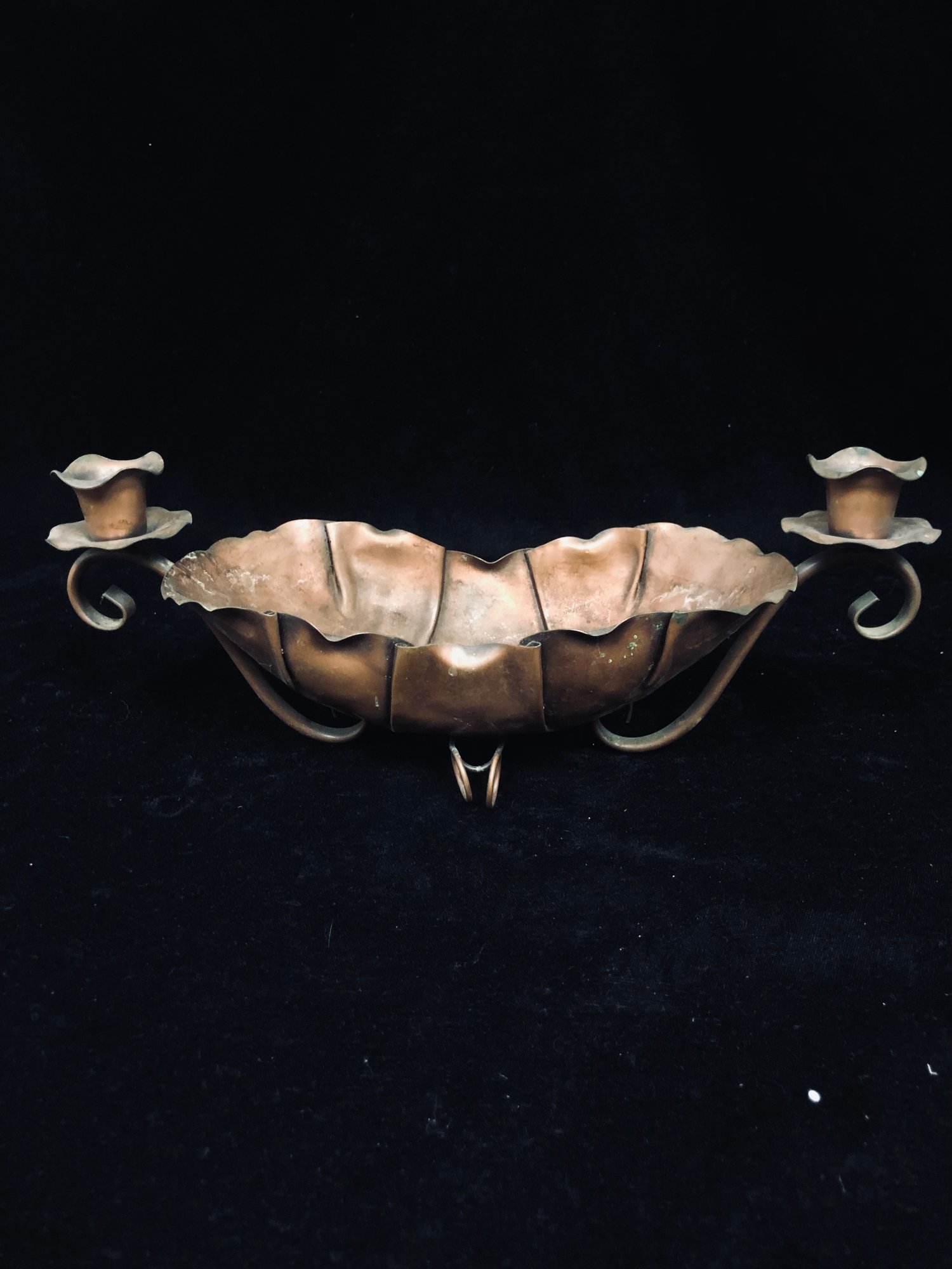 Vintage Gregorian Copper Hand Hammered Candle Holder Bowl