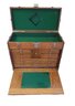 The chest was sitting on a basement floor and and became wet at some point in its life and has dried out since. There are some score marks on the sides of the opening where it looks like someone uses a screwdriver to pry it open, otherwise it's consistent with age and use