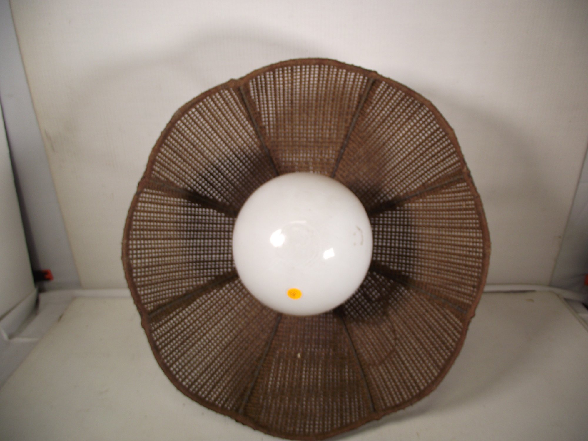 Vintage Hanging Wicker Petal Lamp With Glass Shade