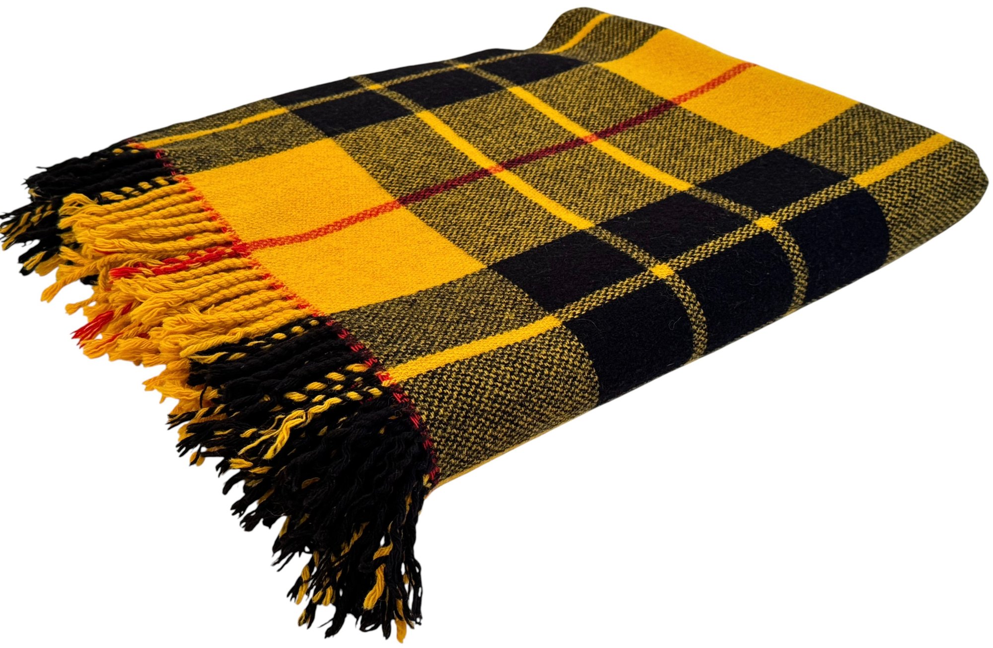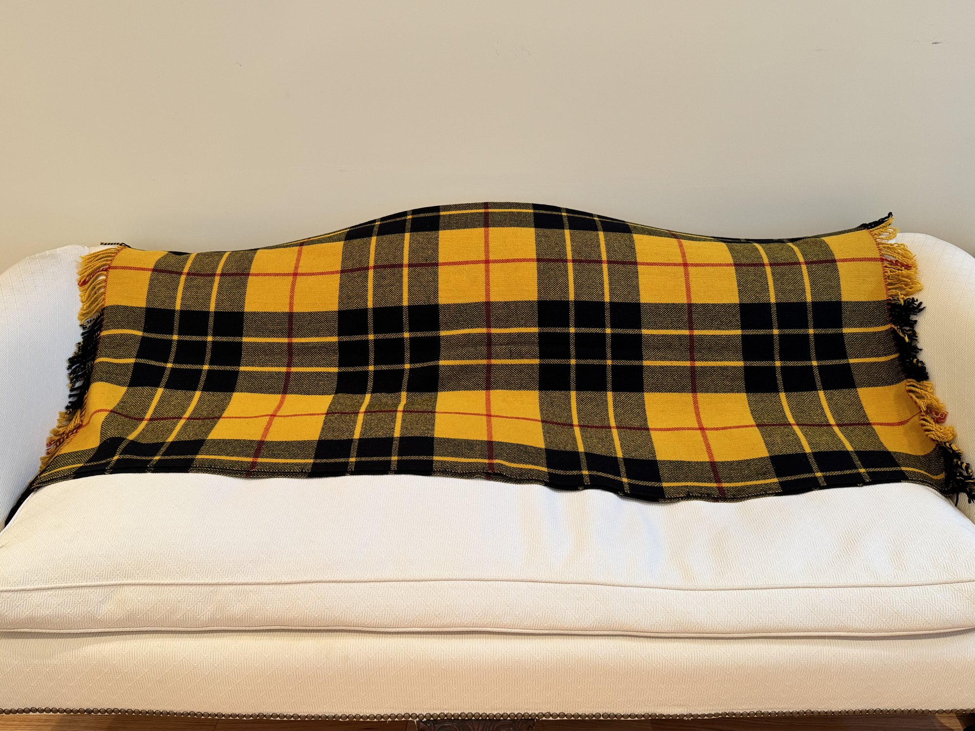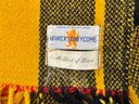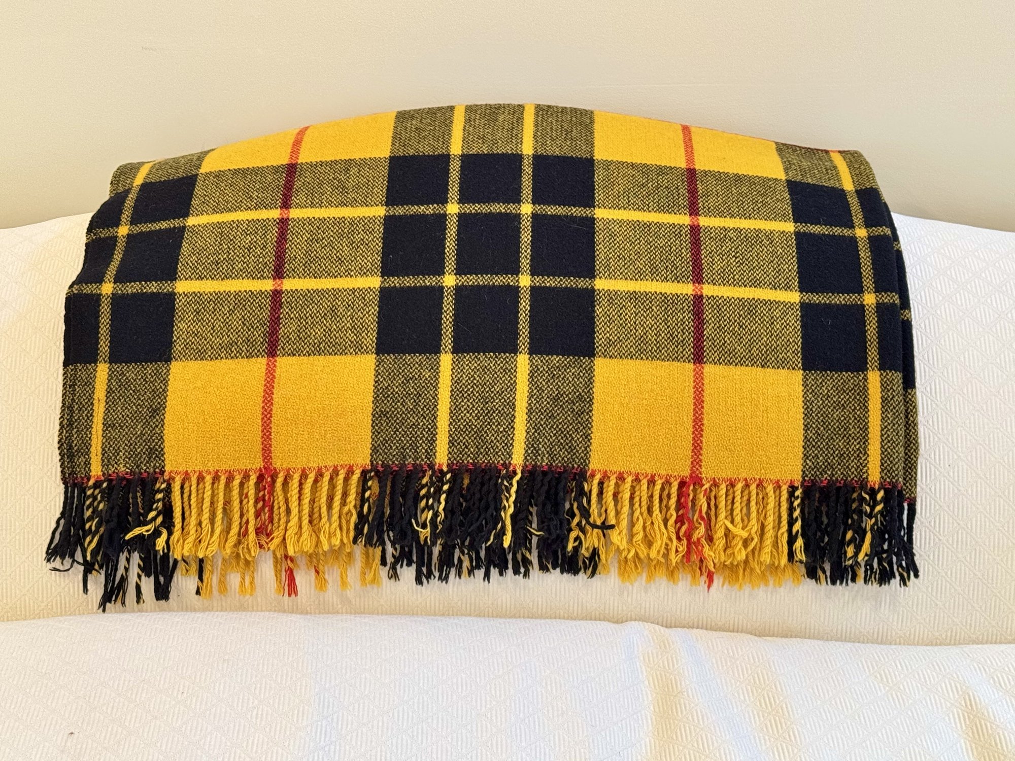 Measures approximately 66" x 60", made in Scotland, no fabric listed but feels like wool.